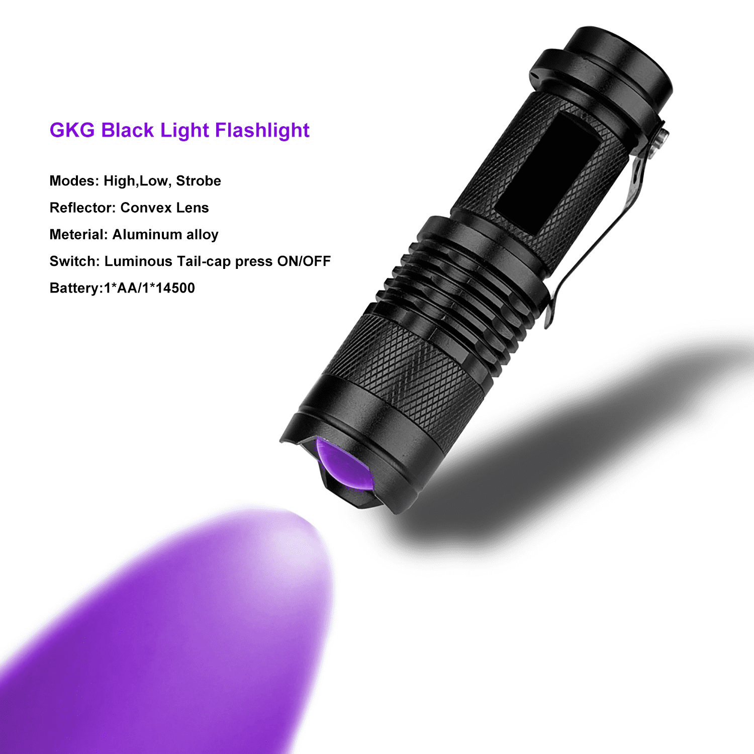 Warm Tips: The uv light uses 1 x AA battery (Battery not included), tail-cap switch ON/OF for easy use.