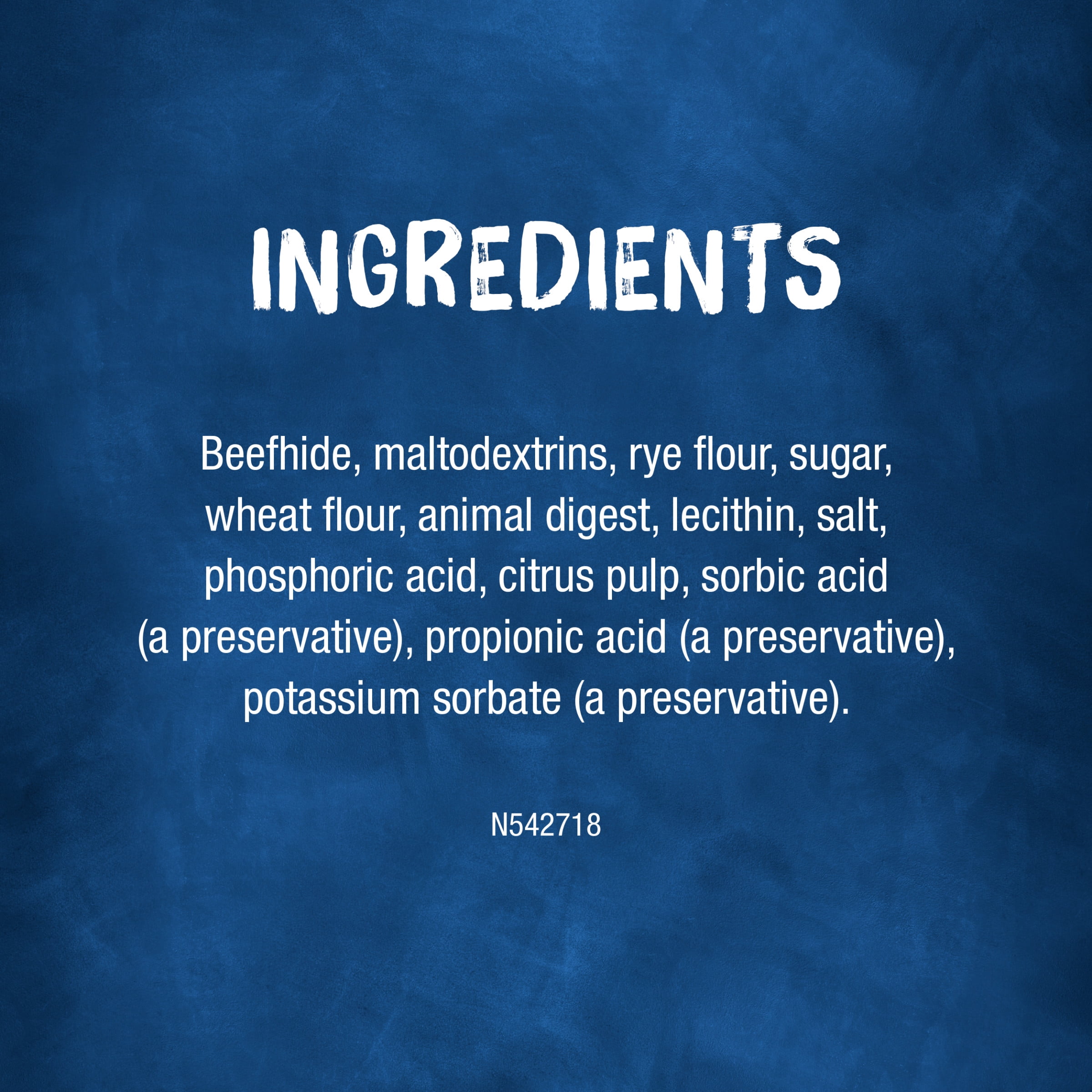 Give your dog a meaty reward that keeps him both occupied and excited when you serve Purina Busy Rollhide With Real Beefhide small/medium adult dog chew treats. He stays enthralled with this savory snack from beginning to end thanks to its uniquely rolled design, especially given its real beefhide exterior and savory middle that deliver long-lasting enjoyment, and chewing helps clean his teeth. Ideal for small- to medium-sized dogs, each chewbone features fun and flavor. Watch his tail wag with prolonged enthusiasm while he works through the challenge of its basted outer layer, which also adds a savory touch he can’t resist. Plus, you can take comfort knowing that we constantly meet or exceed every food quality and safety standard, and he’s getting no artificial colors or flavors added. Encourage your dog’s natural instinct to chew every time you offer him one of these Busy Rollhide dog treats, and feel satisfied that he’s getting a reward that piques his playful, curious spirit.