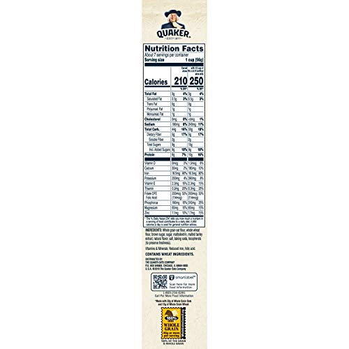 Don’t worry, cold cereal lovers – Quaker Oats has got something deliciously crunchy and heart healthy for you. Our Brown Sugar Oatmeal Squares are made from whole grain Quaker Oats and contain all the soluble fiber of a pouch of Quaker Instant Oatmeal. Packed with the rich sweetness of brown sugar, you might never suspect they’re good for you.Heart Healthy Whole Grains: Quaker Oats are 100 percent Whole Grains; Diets rich in whole grain foods and other plant foods and low in saturated fat & cholesterol may help reduce the risk of heart disease | Good Source of Fiber: Quaker Oats provide a good source of fiber to support a healthy digestive system; See nutrition facts for total fat per serving | Includes 3 boxes of Hint of Brown Sugar Oatmeal Squares | 10 gram protein per serving when enjoyed with milk | Start your day off right with Quaker Oatmeal Squares breakfast cereal