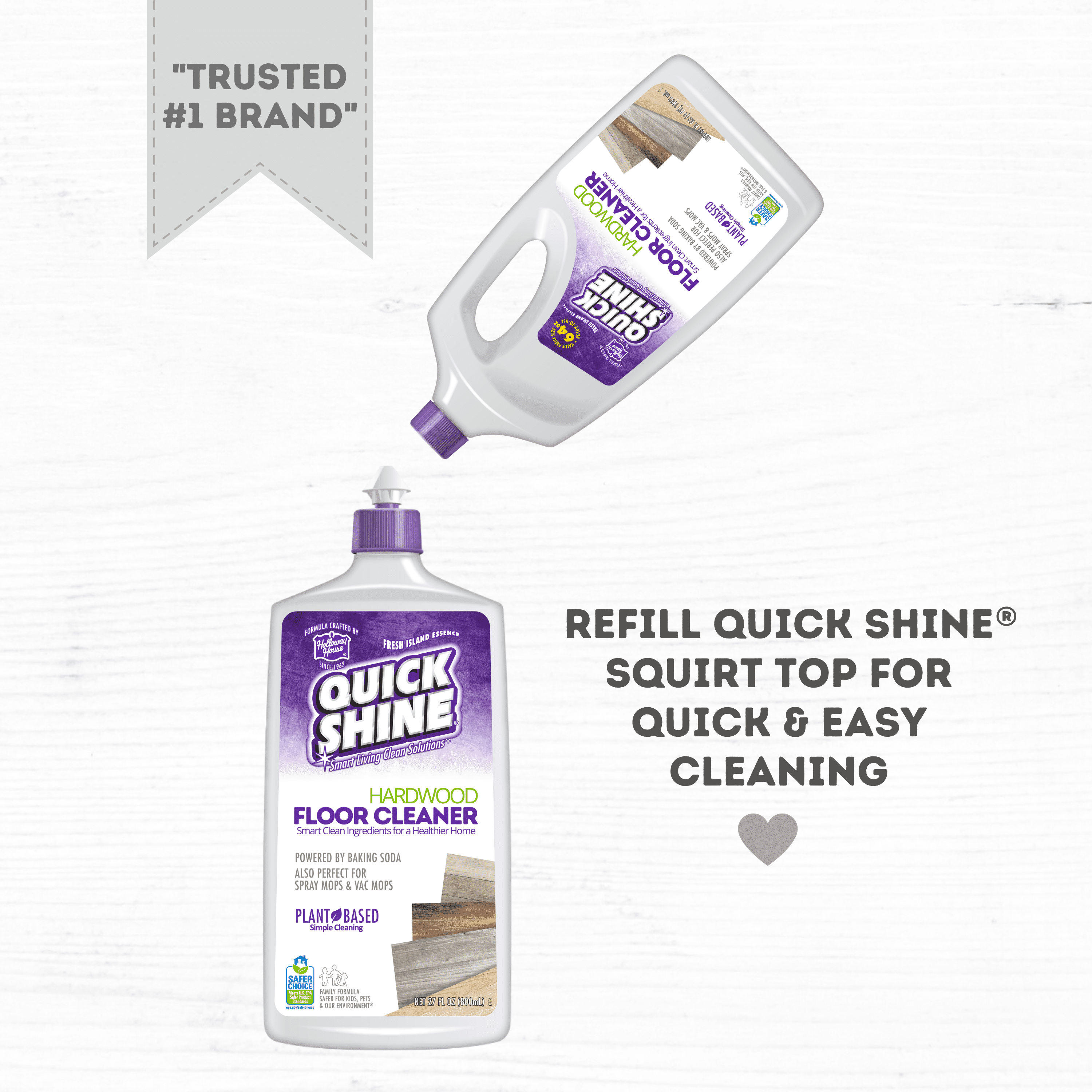 Meet your cleaning crew! Home is where the love (and messes) are, and everyday cleanups and are made easy with Quick Shine Hardwood Floor Cleaner so you spend more time enjoying what matters most. Quick Shine Hardwood Floor Cleaner, 64oz, in the convenient refill size, is ready-to-use and no rinsing is required. The plant-based, pH neutral formula dissolves dirt and leaves a streak free shine for quick and easy cleaning of hardwood floors.