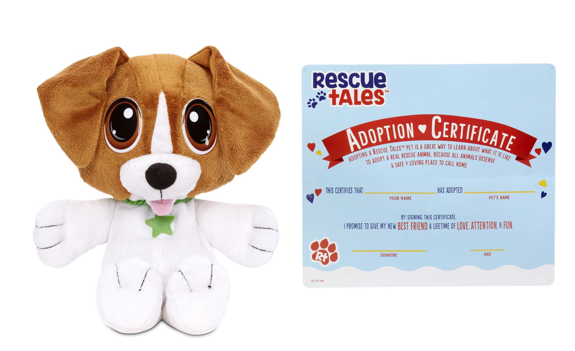 - Includes: Rescue Tales Cuddly Pup Beagle pet toy for kids, collar with customizable tag, and adoption certificate