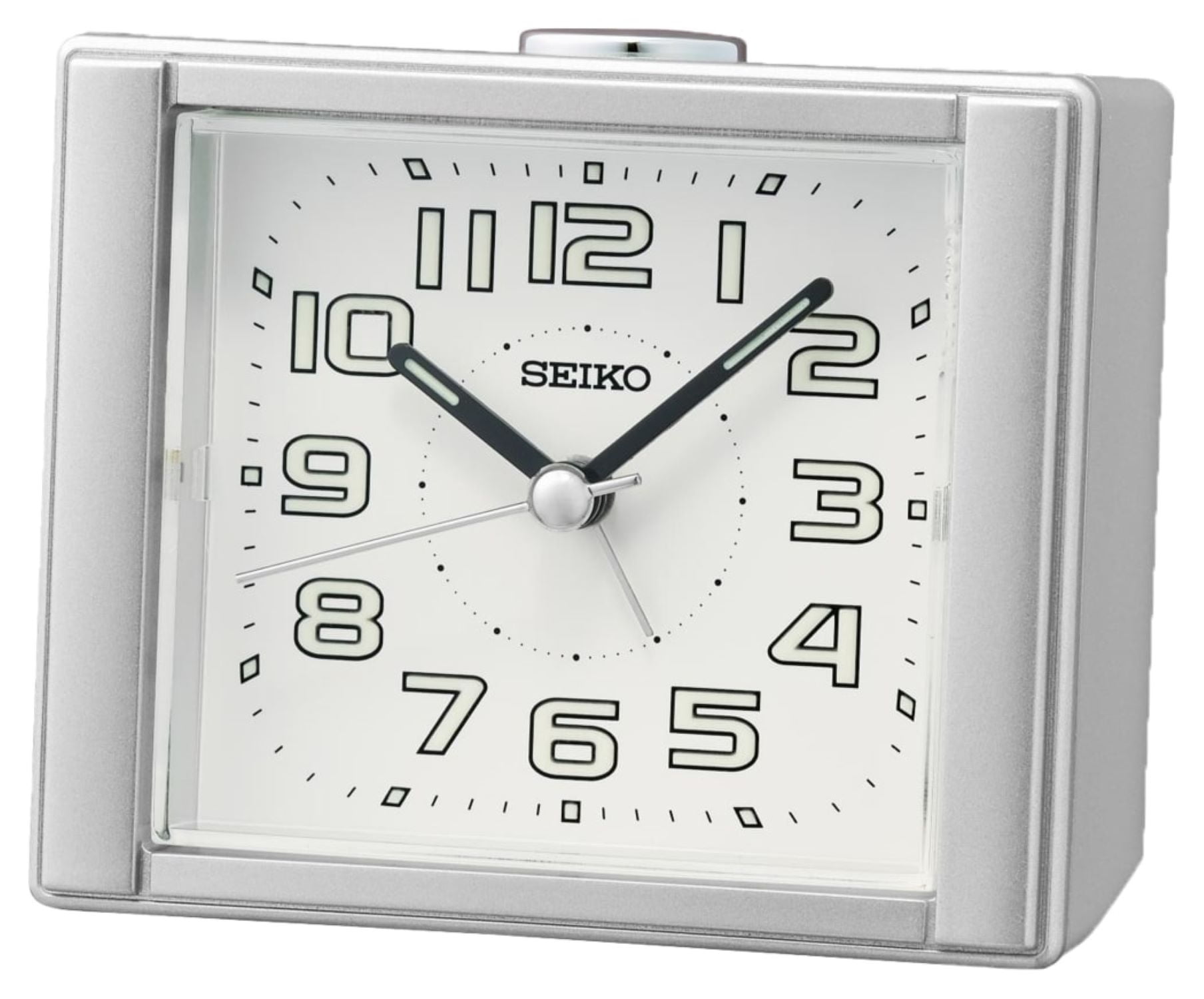 Seiko Aoki Silver Beep Alarm Clock, Analog, Square, Quartz, QHE189SLH