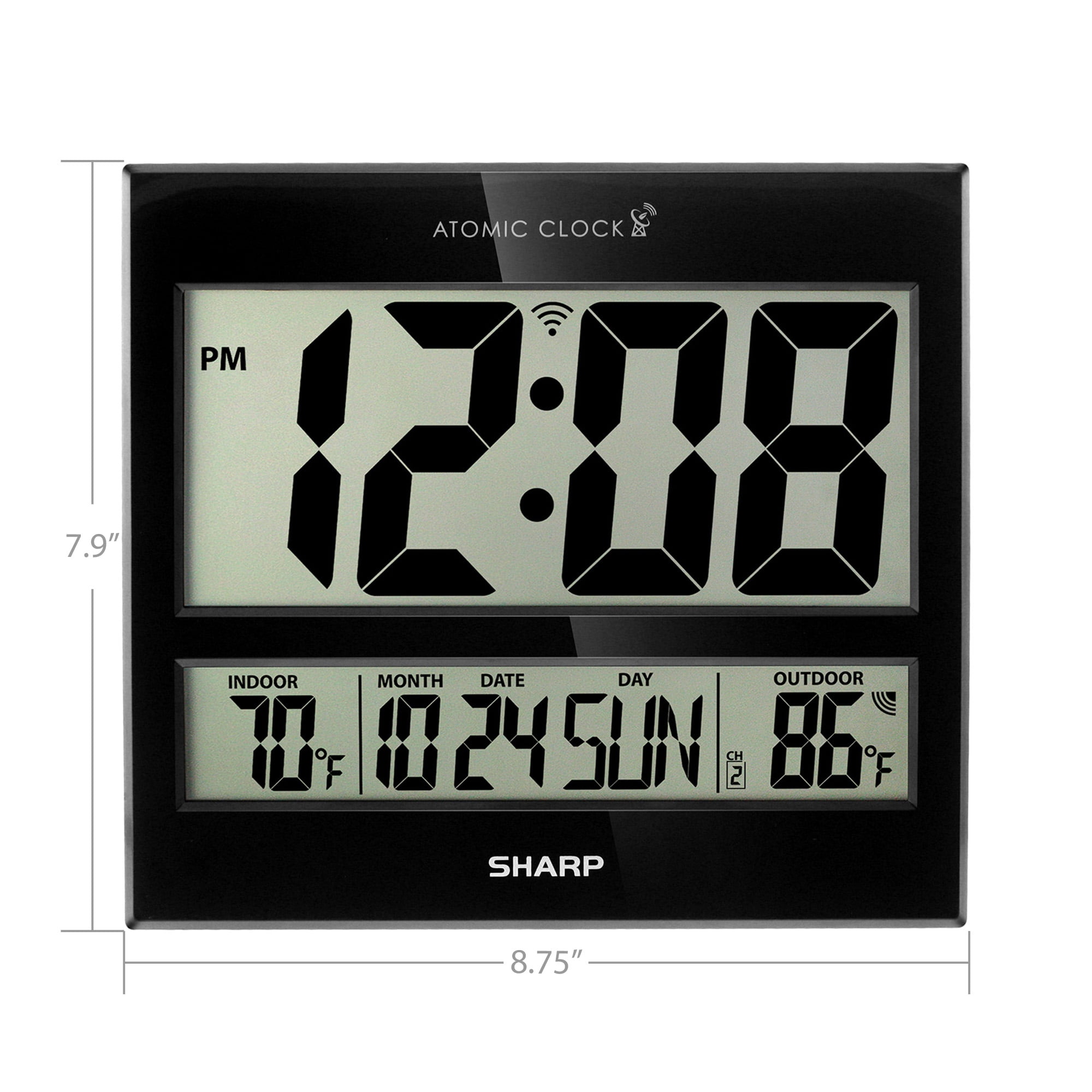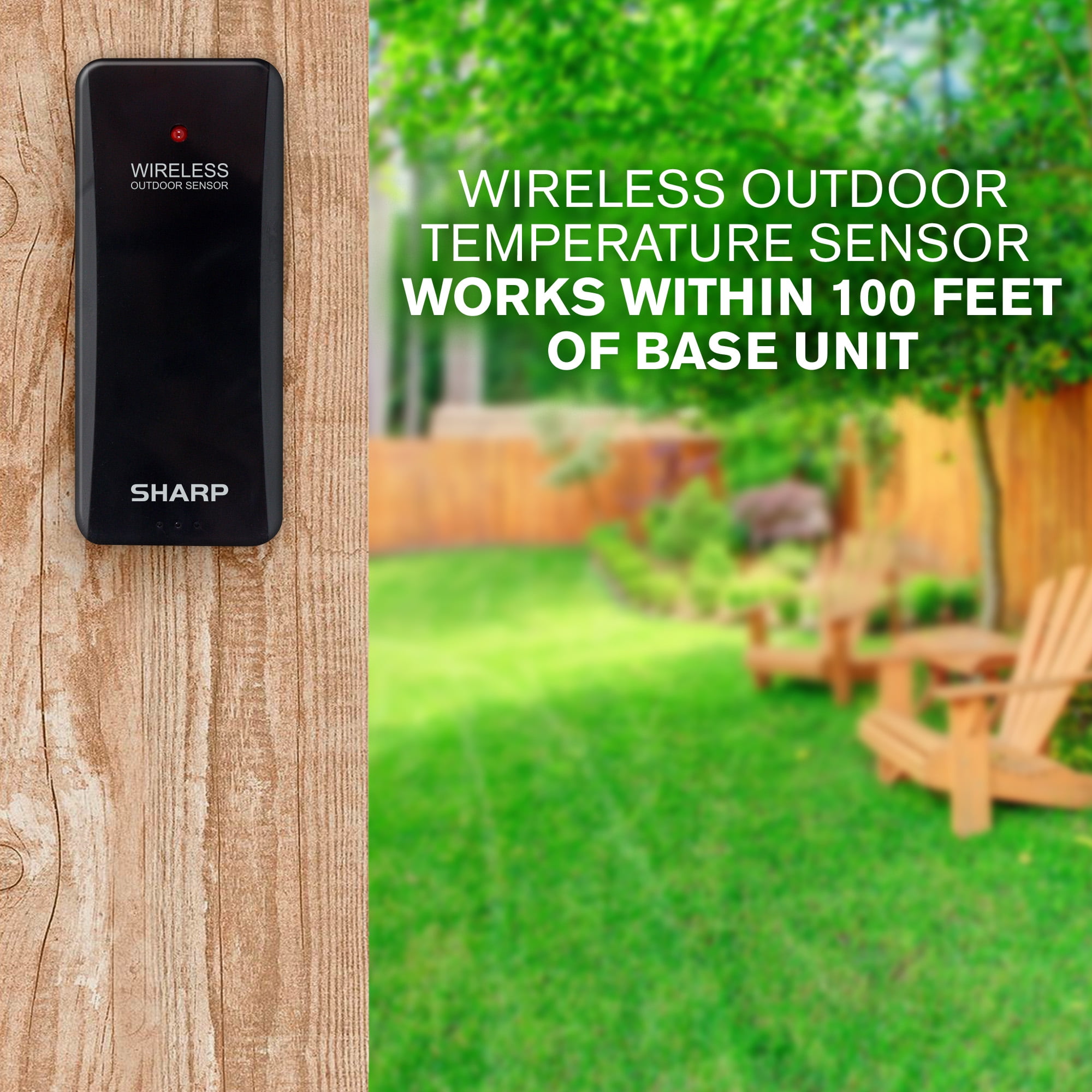 The Sharp Atomic Wall Clock has a built in receiver that automatically synchronizes itself with the WWVB radio broadcast by the US Government ‘s National Institute of Standards and Technology (NIST) in Fort Collins, Colorado. The Wireless Sensor placed anywhere within 100 feet of the receiving unit to recieve the outdoor temperature. NO wire installation needed! Automatically Sets for Daylight Savings Time: Just set the Daylight Savings Time too ON. The Atomic Clock will always be accurate to within one second. If the atomic icon is flashing, the clock is looking for the Atomic signal. Wait until the atomic icon stops flashing before continuing with the clock set up. In most areas, a signal can be received at night. If the clock doesn’t receive the WWVB Atomic Signal immediately, wait overnight and it will be set in the morning.