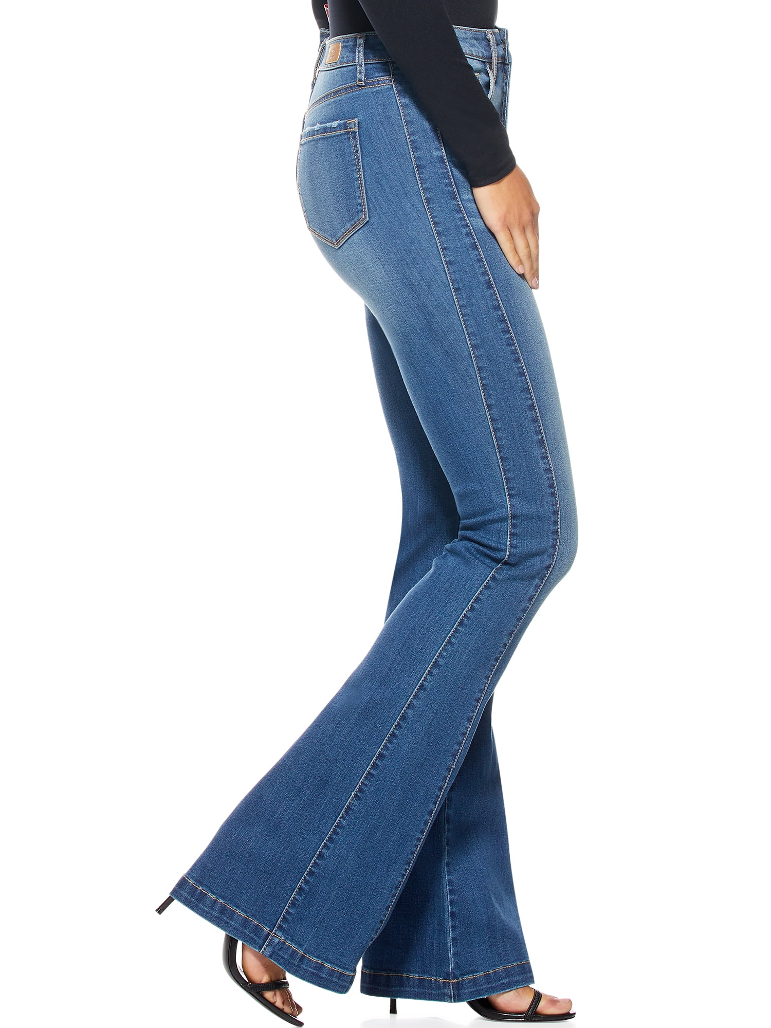 - Why You’ll Love It: Stretch denim in a throw-back flared silhouette take your jeans collection to the next level of fabulous./ Por qué te encantarán: Los jeans de mezclilla con elasticidad y estilo acampanado que evocan el pasado mejoran tu colección de mezclilla y la llevan más allá de lo fabuloso.