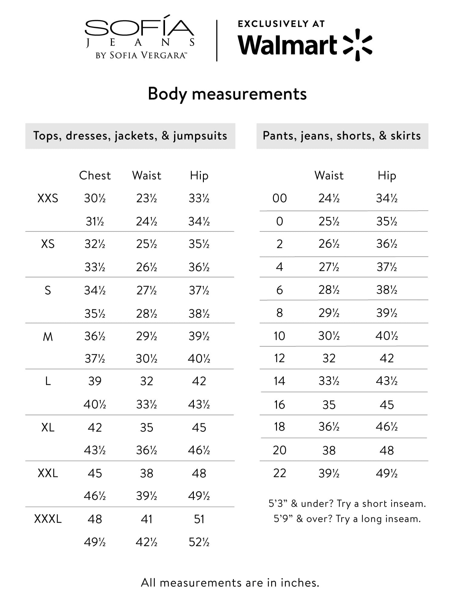 - Approx. Model Measurements: Height: 5’10”, Waist: 26”, Bust: 33”, Hips: 36”/ Medidas aproximadas de la modelo: estatura: 5’10”; cintura: 26”; busto: 33”; caderas: 36”