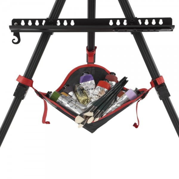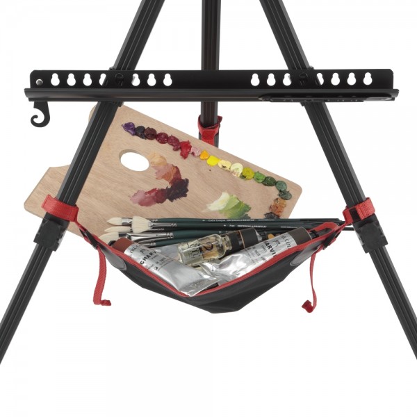 Originally, stone bags were designed to provide a counterweight for additional stability when working with a tripod. Today, however, the usage of stone bags has been extended to providing a supplementary place for artist to store supplies while working in the field, making the SoHo Stone Bag an ideal accessory for both plein-air painters and photographers. This bag comes empty, but can be filled with various weighted objects, such as sand or gravel, to provide stability when painting in windy outdoor conditions. Photographers can also use it as a counterweight when working with a heavy camera or lens combination. Working with a tripod field easel does not give you a lot of area to lay out supplies when working. Having a stone bag attached to your tripod allows you to store and access additional supplies you may need with ease. From palettes to extra camera lenses this bag is large enough to accommodate most materials you would bring into the field with you. This bag measures 14" across and has a depth of 7-9.5" and will allow any load up to 35lbs. Ingeniously designed, the extended length of the adjustable strap to the leg is 6.5", and the ties are 7" so it is easy to take on and off. The durable bag is made of a PVC-Coated polyester material which is easy to clean and folds up easily which adds very little weight to the supplies you carry into the field.