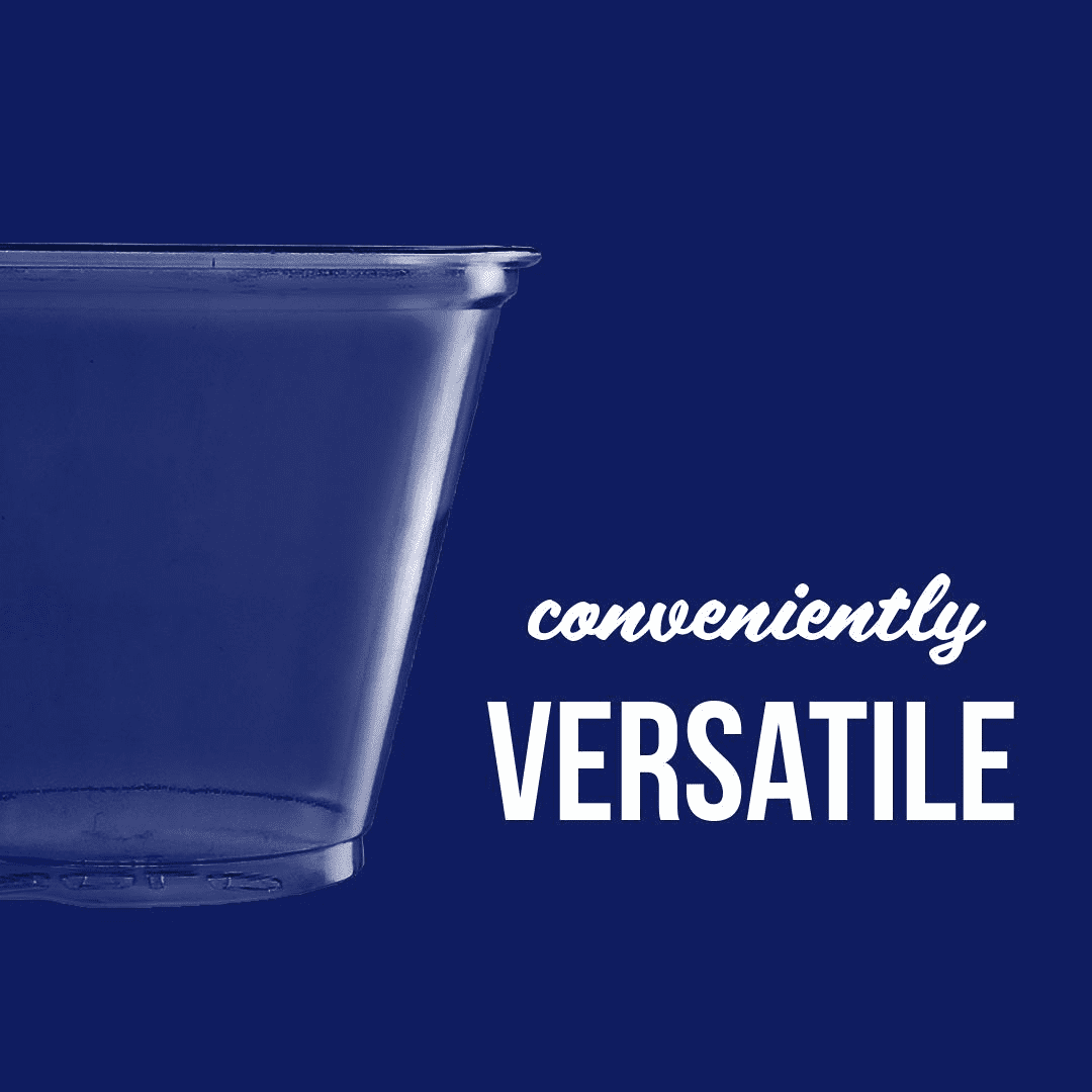 Get ready for your next big party or event by stocking up on these Solo Clear Cups. They’re the ideal shape and size for making desserts in or serving wine and mixed drinks at events and parties. The plastic party cups can be easily thrown away once they have served their purpose. This helps make cleaning up quick and easy. The disposable cups come in a package that contains a count of 50 units. Each one of them holds up to 9 ounces.