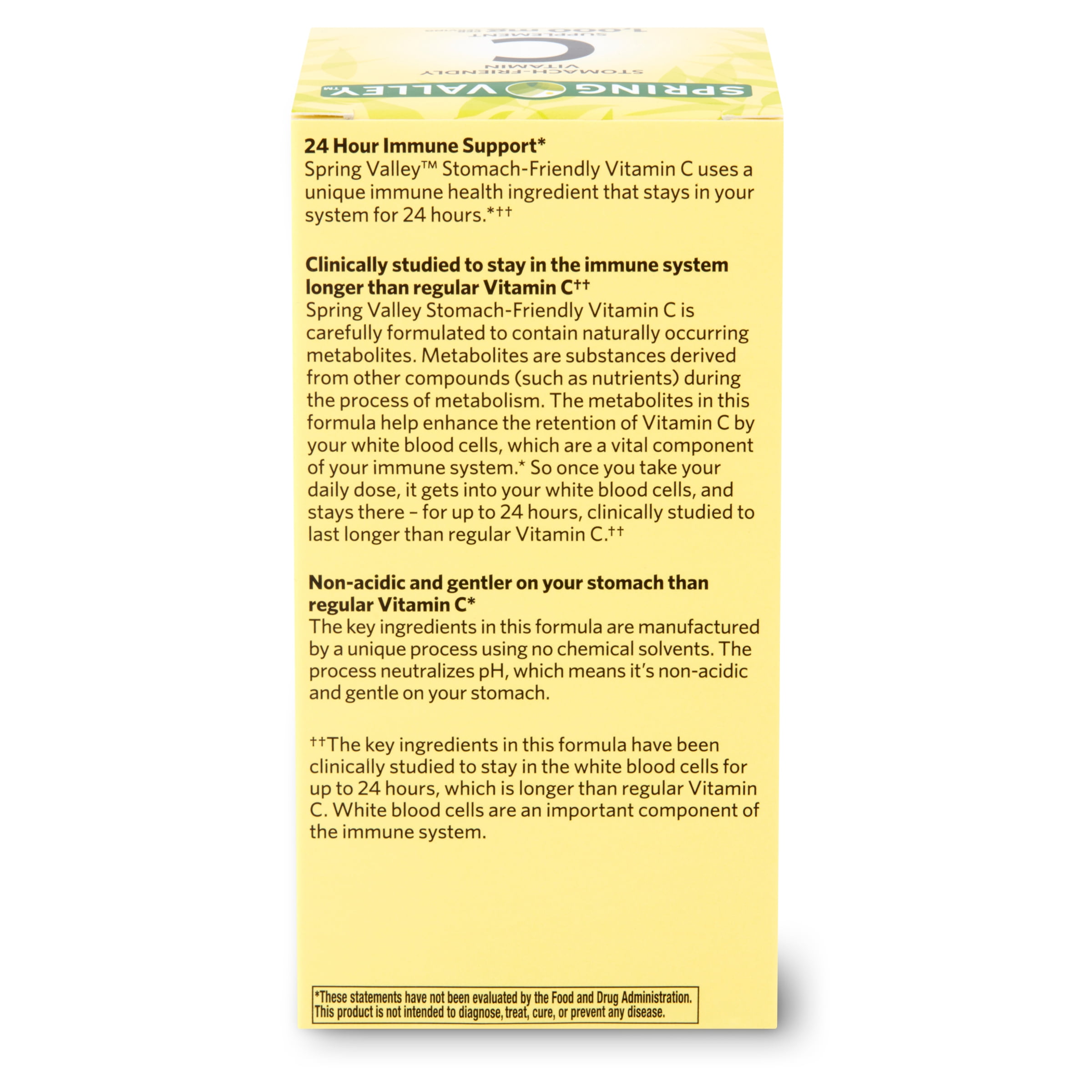 Spring Valley™ Stomach-Friendly Vitamin C uses a unique immune health ingredient that stays in your system for 24 hours.*††