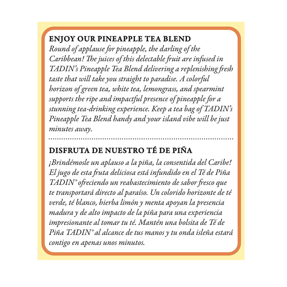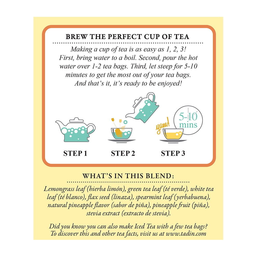 - FLAVOR AND AROMA NOTES: Tadin’s Pineapple Tea Blend blossoms with notes of pineapple, mint, and lemongrass for a balanced tropical taste.