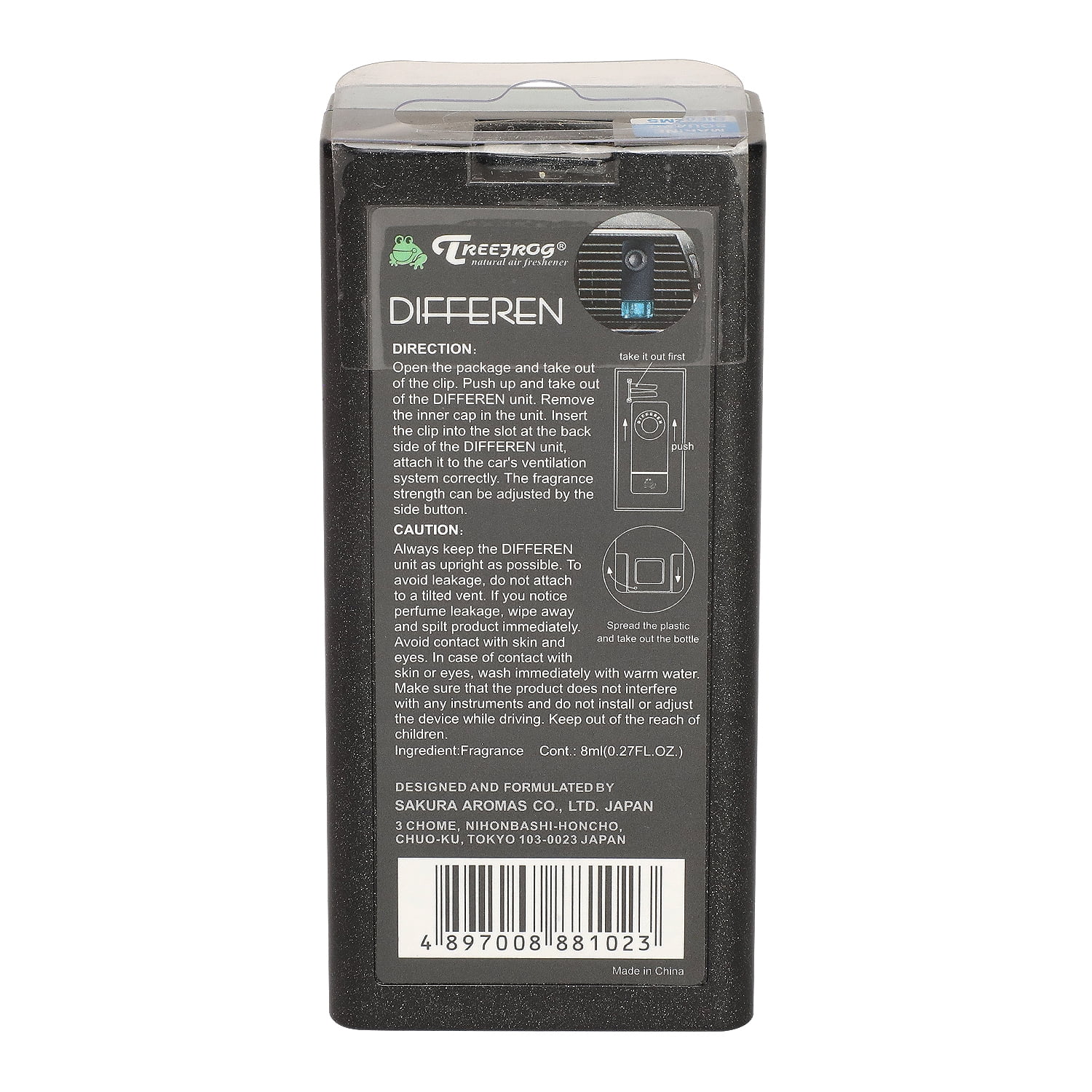 Treefrog DIFFEREN Vent Clip Car Air Freshener Marine Squash Scent 1 CT is made of premium quality ingredients. The Marine Squash scent is refreshing with a hint of fresh lemon squash scent. This air freshener comes with the ability to adjust the fragrance strength by adjusting how much you open or close it. It features an elegant and classic design with stainless clips, safety and credibility, and an easy-on and easy-off design. It is long lasting for up to 45 days. Formulated in Japan. Newly designed packaging and new fragrances available.