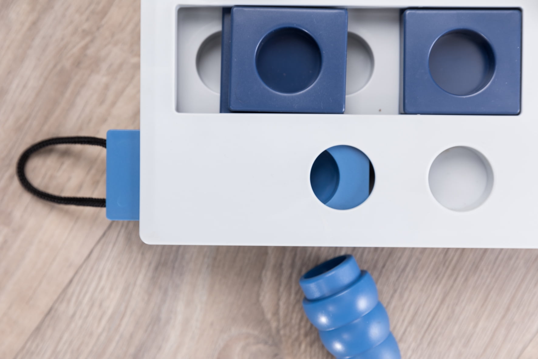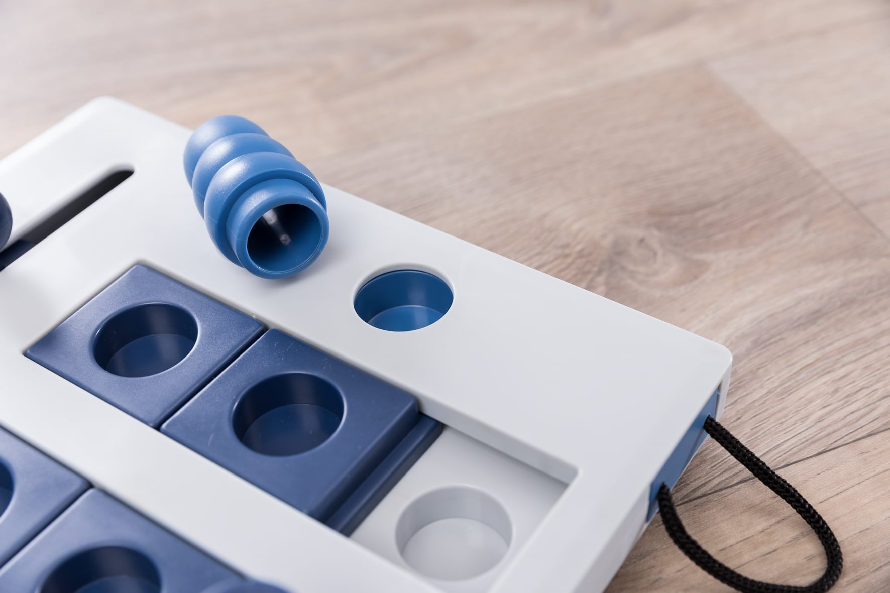 Dogs are very playful and intelligent animals. Channel their energy and curiosity into something positive with TRIXIE’s Mini Mover (Level 3). With four levels of play that require practice and concentration, this game is designed for the advanced canine game player.Game 1: Lift up cones. Design prevents cones from being knocked over. They must be lifted straight up.Game 2: Move multiple sliders to reveal hidden treat compartmentsGame 3: Move knob to earn the reward hidden inside the drawerGame 4: Open the drawer using the rope pullKeep your dog challenged and curious by varying the number and placement of cones and treats. The non-slip rubber feet keep the game in place as your dog moves, slides, lift and explores. We’ve also included an instructional booklet with tips and tricks for challenging and training dogs of all ages through play. Dishwasher safe. One year warranty. Dimensions: 10 x 8 Inch. Weight: 1.5 lbs.