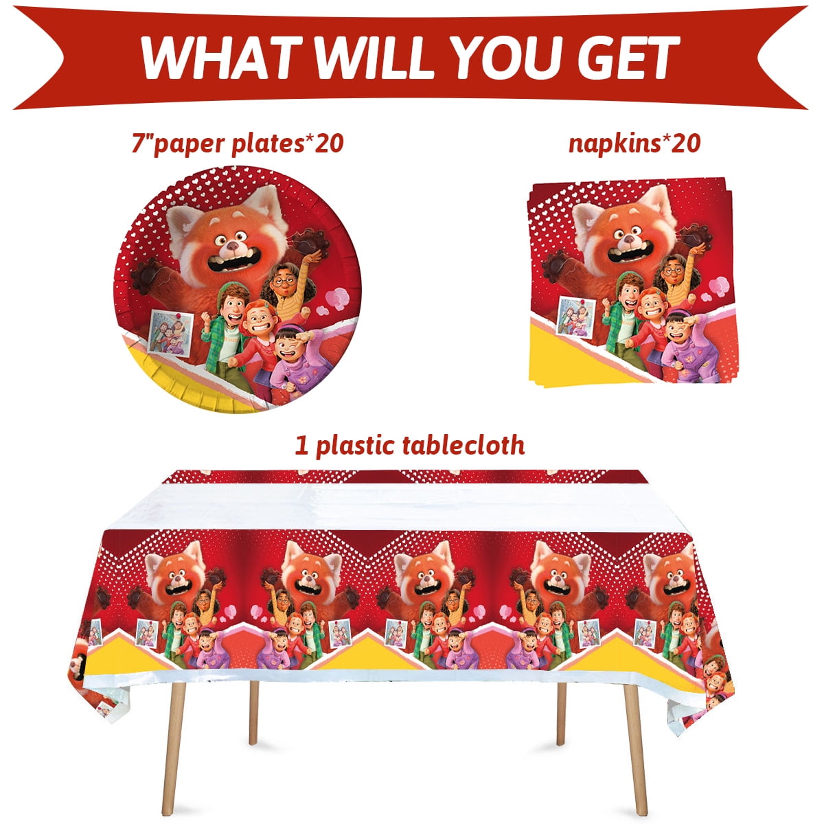 - Red Set Includes: 20pcs 7" paper Plates+20 Napkins+1 plastic Tablecloth, perfect for your boy’s girl’s birthday party.