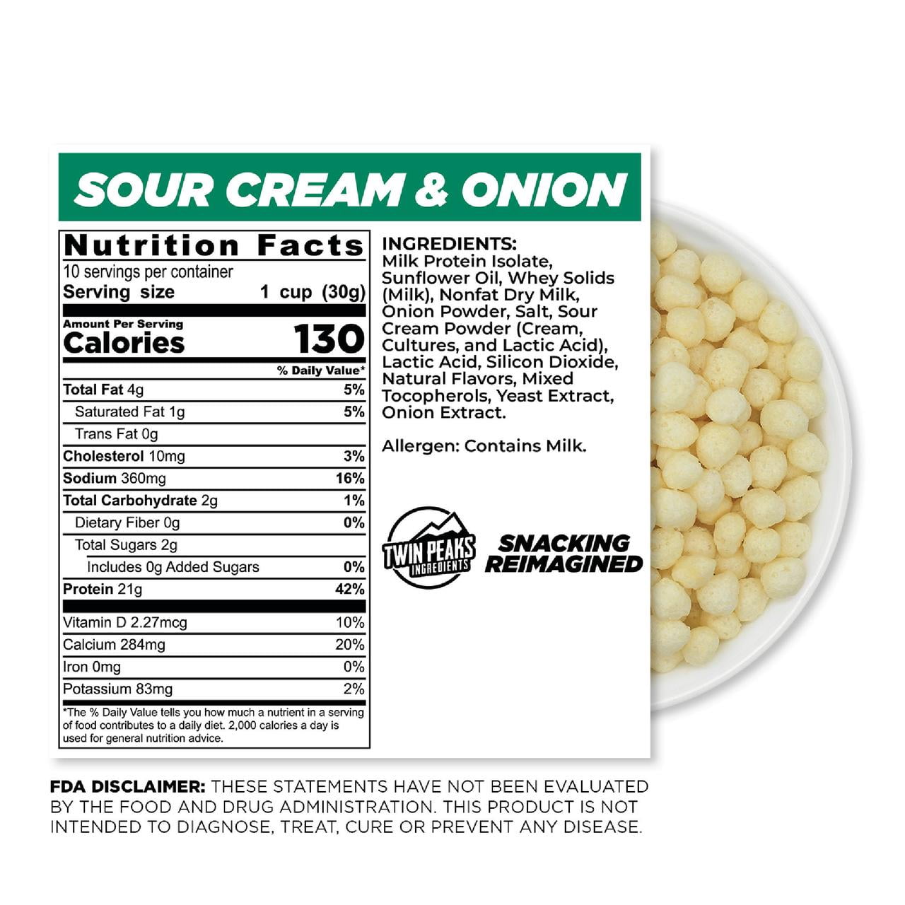 Twin Peaks Low Carb, Keto Friendly Protein Puffs, Sour Cream & Onion (300g, 21g Protein, 2g Carbs)