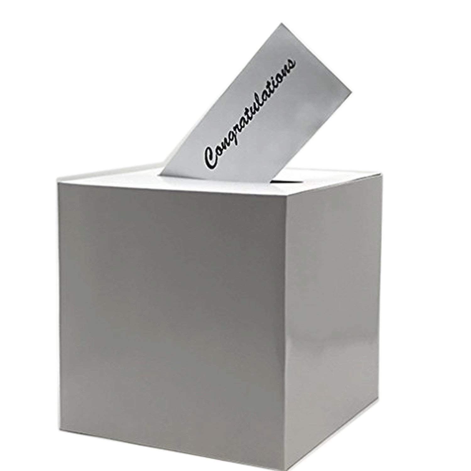 Measures: 10"x10"x10"Simple assembly required1 Box per packageCollect cards at your wedding reception or ceremonyMoney slot is 6.5" long by 3/4" width