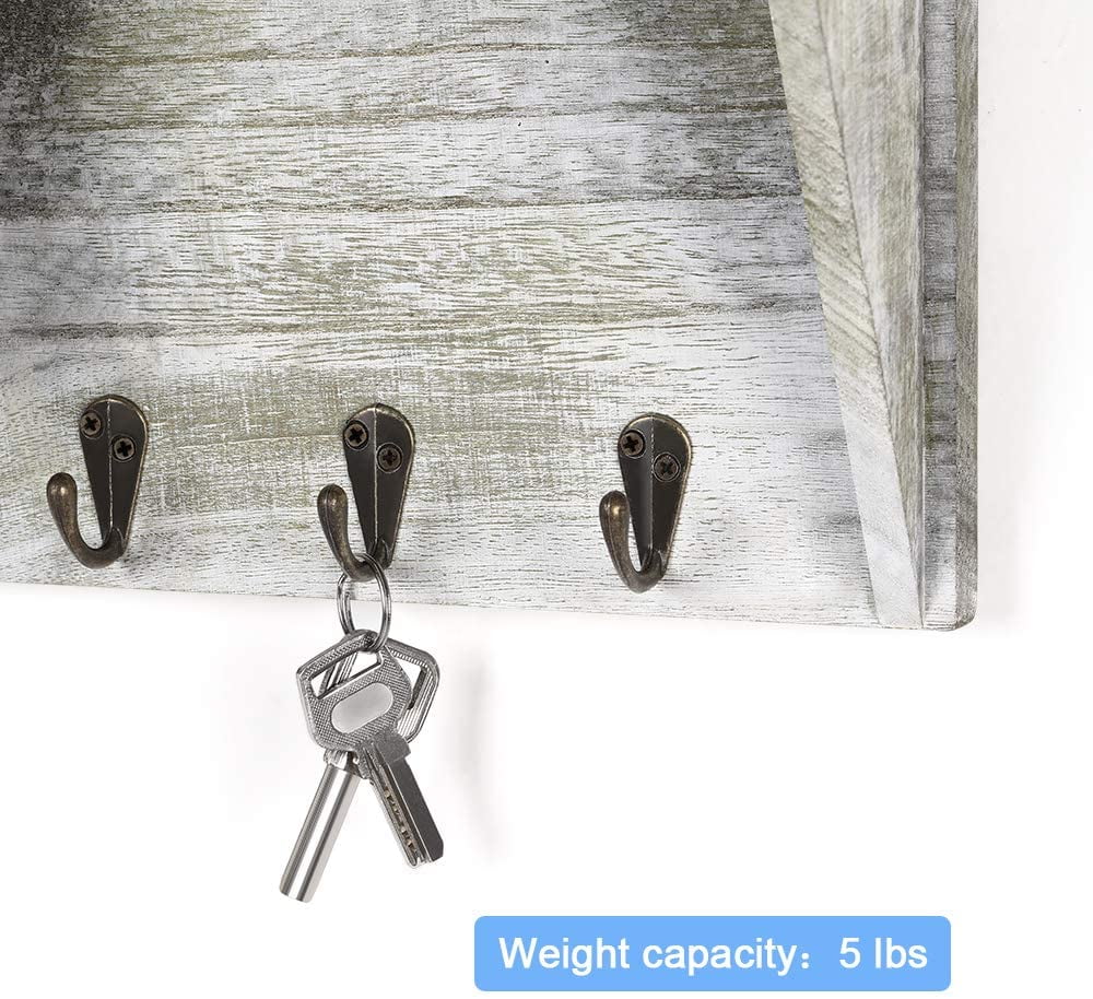 - • [RUSTIC MAIL & KEY HOLDER ORGANIZER] Our mail organizer wall mount is designed with your utmost convenience in mind to hold your mail, bills, letters, and cards neatly organized; The six hooks on the bottom of mail sorter allows you to hang your keys as well as car keys, sunglasses, and other lightweight accessories to keep them much more organized and in sight.