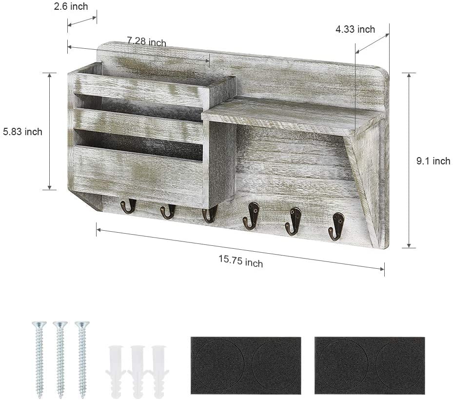 - • [WALL-MOUNTED MAIL SORTER] Measuring in at 15.75"(L) x 4.33"(D) x 9.1"(H), compact but spacious enough to hold your everyday items. Combined with hardware and instruction manual, just follow the instructions and you’ll have it mounted on wall easily. Setup can be done in the blink of an eye.