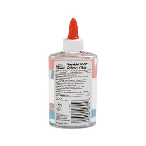 Attach items to paper, wood, cloth, pottery, and more with the non-toxic adhesive of Elmer’s Washable School Glue. Specially formulated to be washable and easy to use, Elmer’s School Glue perfect for school projects and home arts and crafts. Elmers School Glue is adjustable before setting and does not run, delivering reliable results with every use. You can also use your liquid glue to create glue slime Adhesive Type: Liquid Packing Type: Bottle Washable: Yes Color on Application: White.