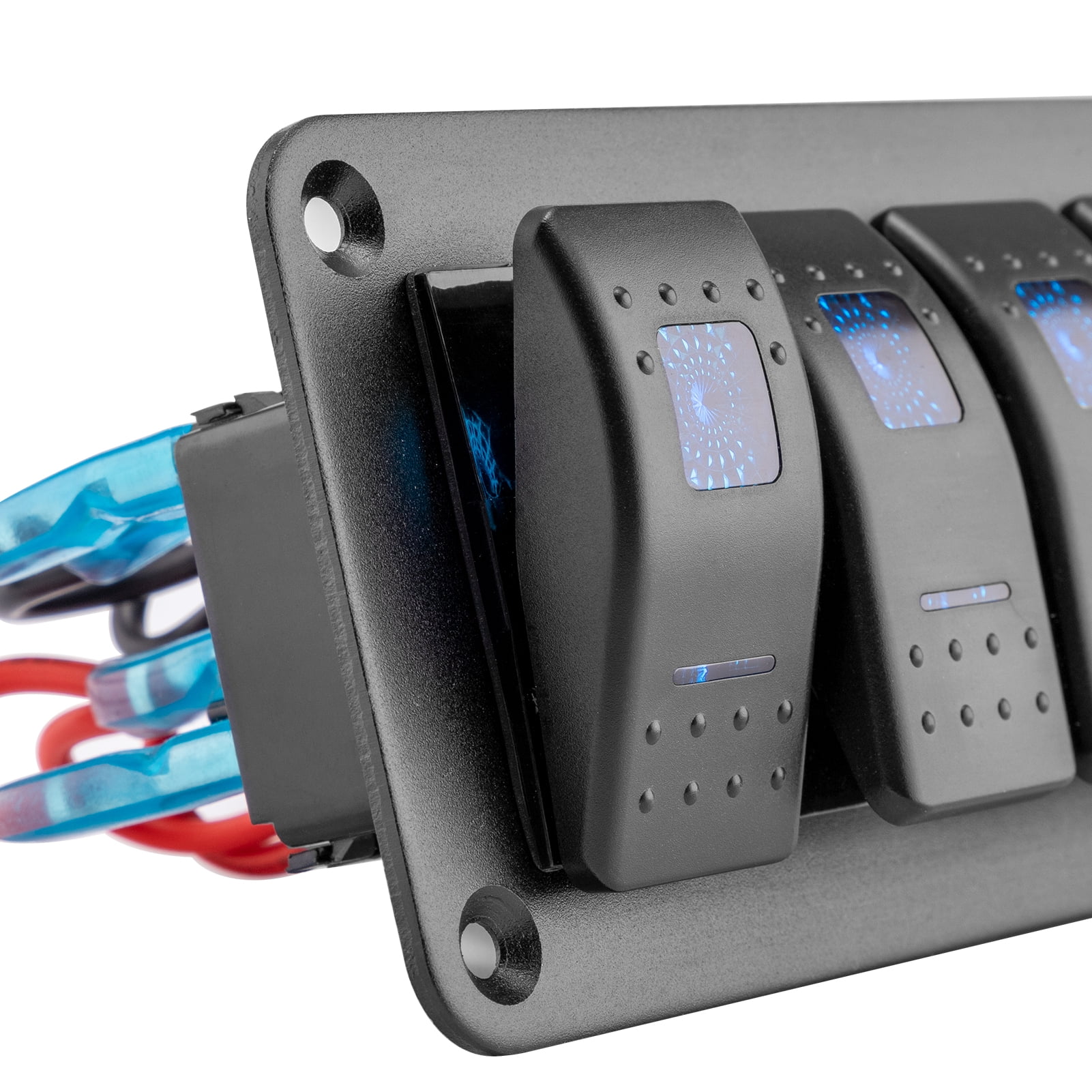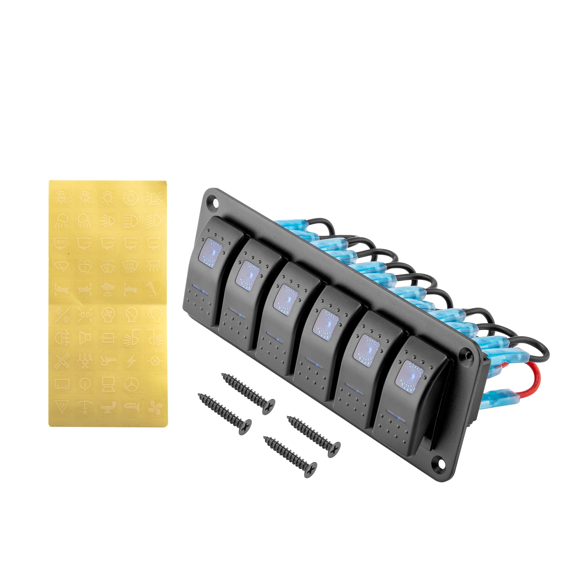 This is a very adaptable 6 Gang switch panel, fits Car, Motorcycle, SUV, ATV, UTV, Boat, Marine, Ship, Yacht etc. Made of durable synthetic plastic. Volt: 12V/24V DC. Ampere: 20Amp/10Amp.