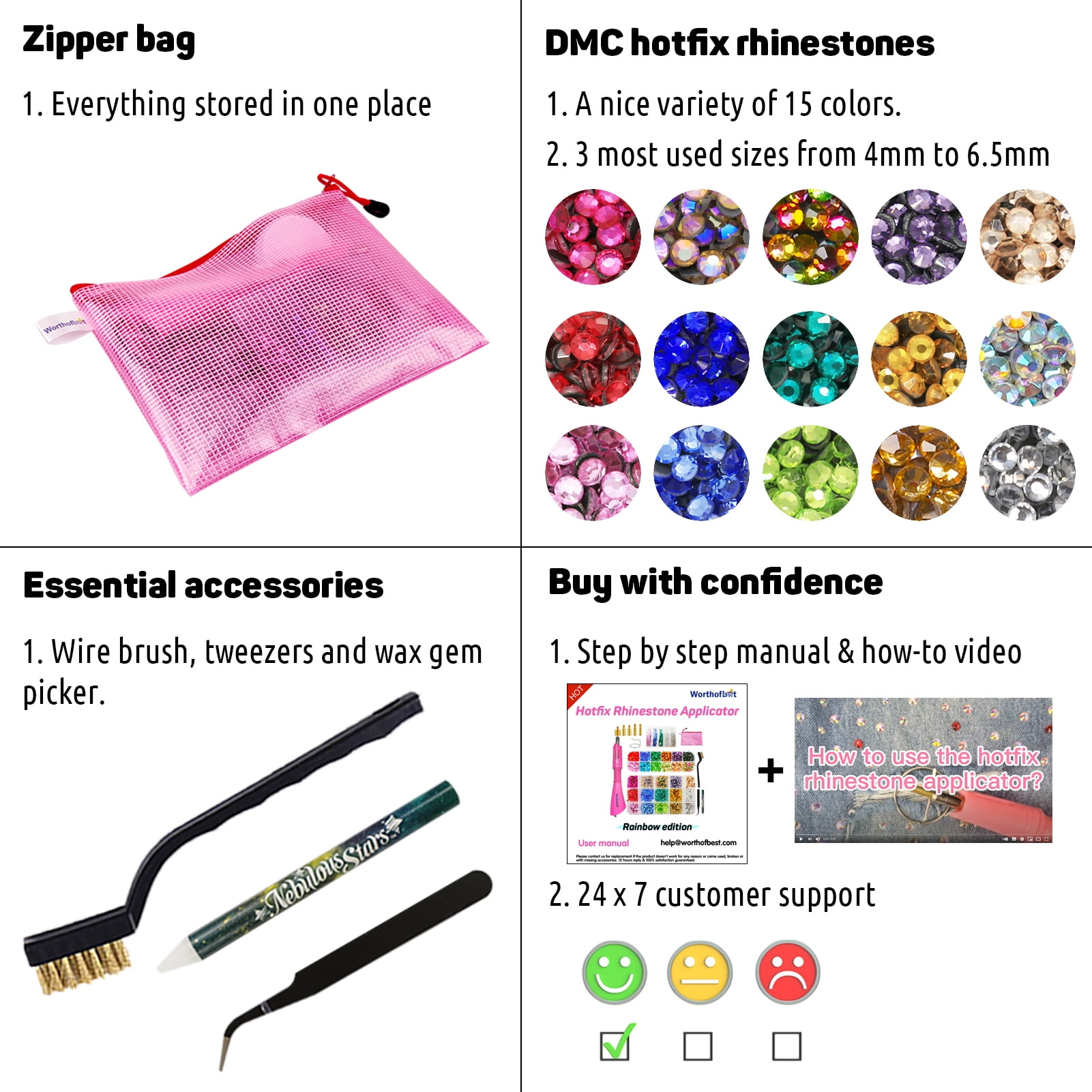 Worthofbest Bedazzler Kit with Rhinestones, Hotfix Applicator, Hot Fix Tool, Unisex, Age group 12 and up