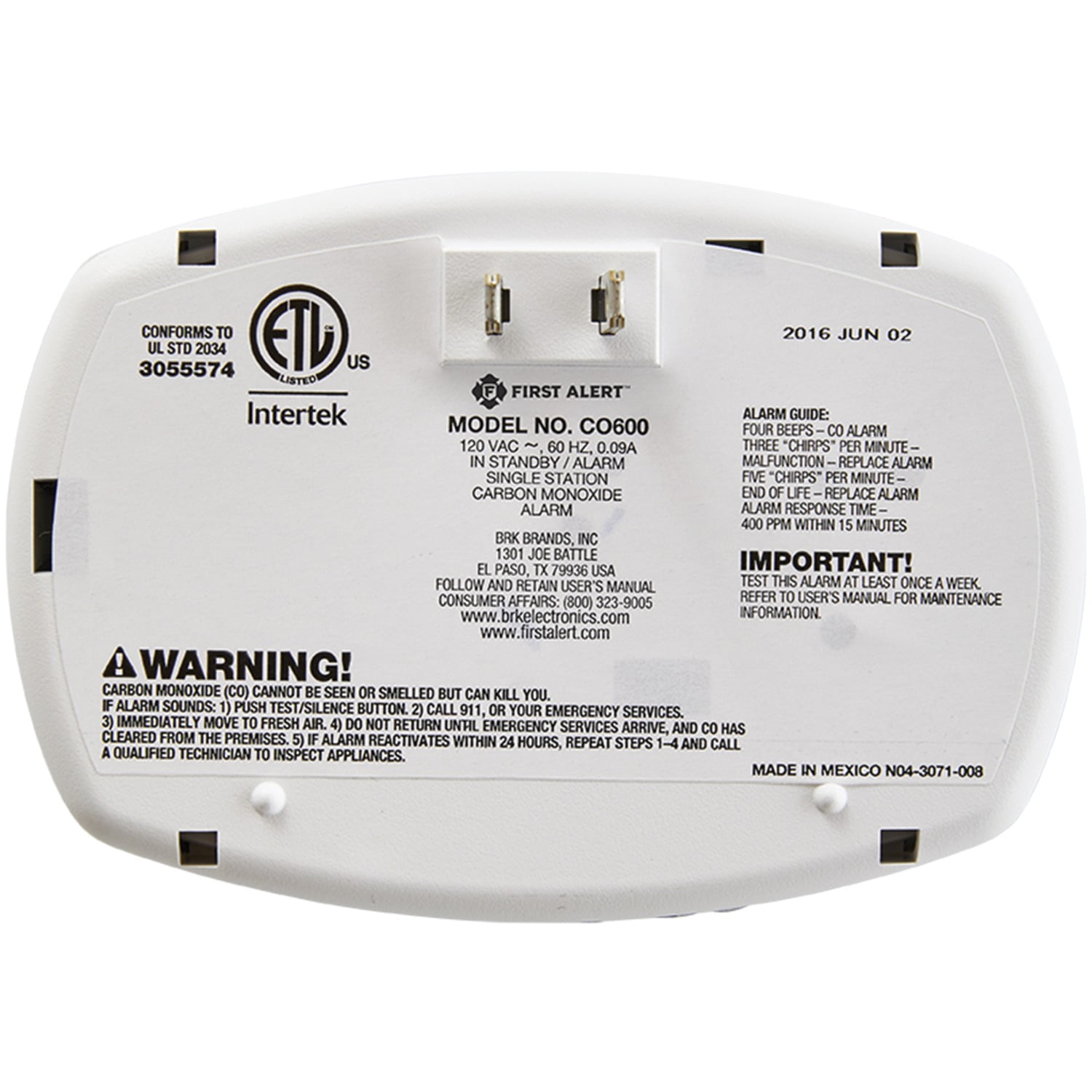 First Alert Plug-in Electrochemical Carbon Monoxide Detector