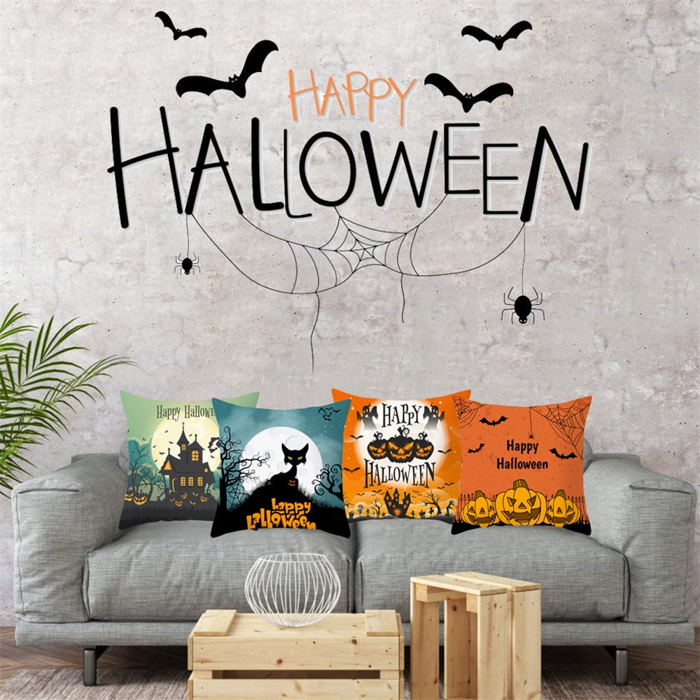 4PCS Halloween Throw Pillow Covers – Halloween Pumpkin Printing Polyester Covers Square 18×18 inch for Sofa Bed Couch