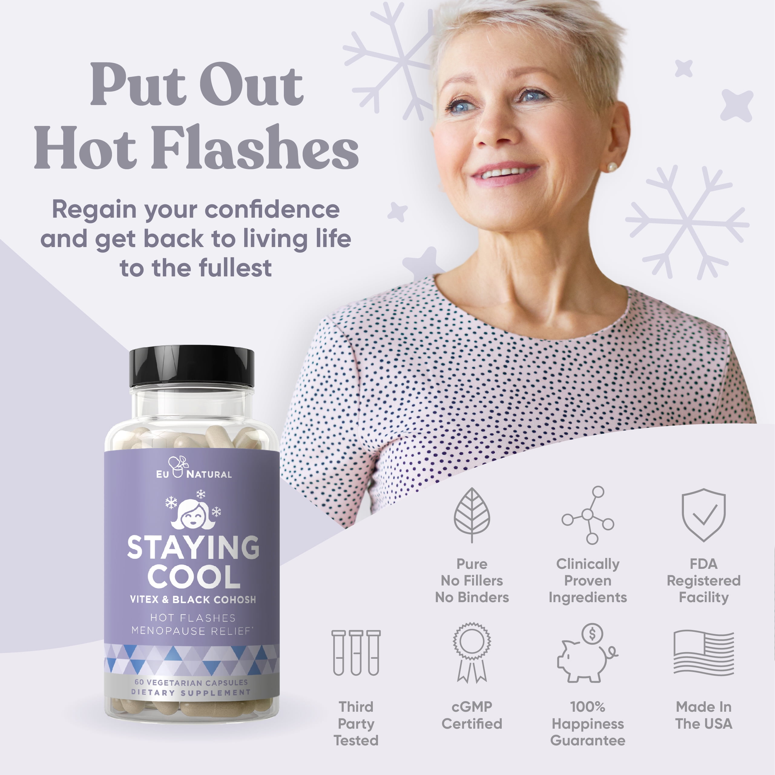Staying Cool Hot Flashes & Menopause Natural Relief – Hormonal Weight Support, Night Sweats, Disturbed Sleep, Mood Swings – Vitex Chaste Tree & Black Cohosh Pills – 60 Vegetarian Soft Capsules