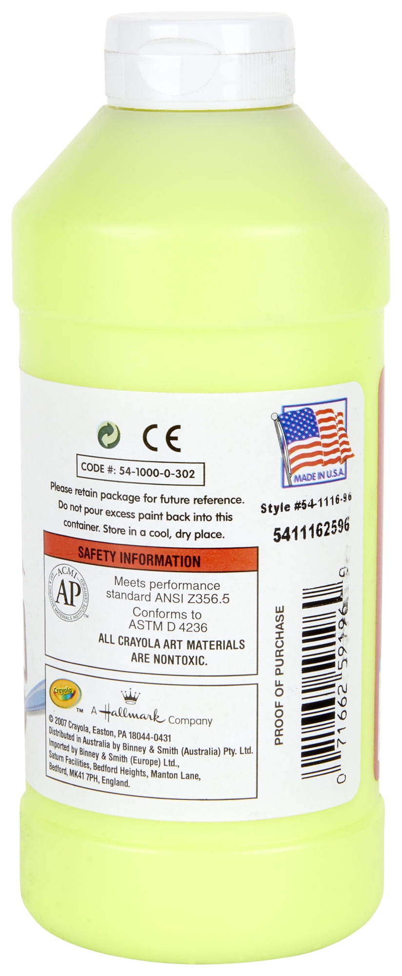 Crayola Premier Non-Toxic Tempera Paint, 1 Pint Squeeze Bottle, Fluorescent Chartreuse (Yellow Green)