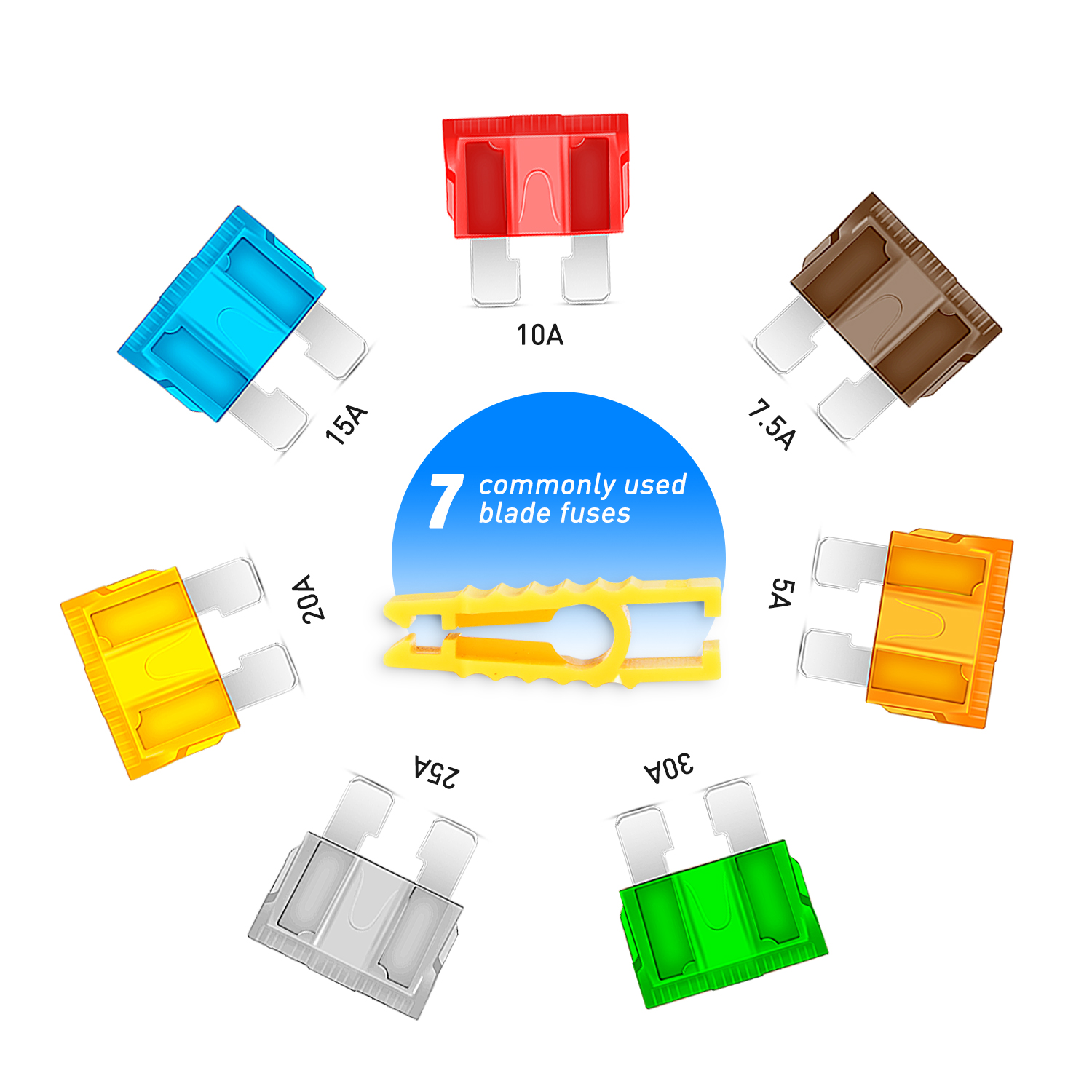 Nilight 120 pcs Standard Fuse Assortment kit ? 5, 7.5, 10, 15, 20, 25, 30 AMP ? Regular APR/ATO (Open)/ATC Blade Fuses for Cars, Trucks, Boats,Automotives,2 Years Warranty
