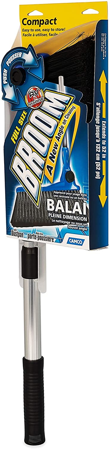 Camco RV Adjustable Broom and Dustpan, Features a Telescoping Broom Handle from 24′ to 52′, (43623)
