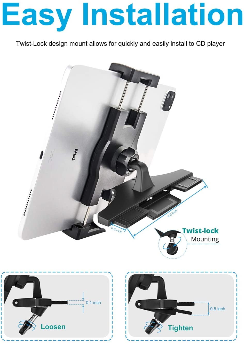 woleyi CD Slot Car Tablet Mount Full Rotation CD Player Car Tablet Phone Holder for iPad Pro 9.7, 11, 12.9 Air Mini 5 4 3 2, Samsung Galaxy Tabs, Switch, iPhone, More 4-13′ Cell Phones and Tablets