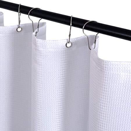 Curtainking White Fabric Shower Curtain for Bathroom Water Resistant Square Textured 70×72 inches with Curtain Hooks 1 Panel