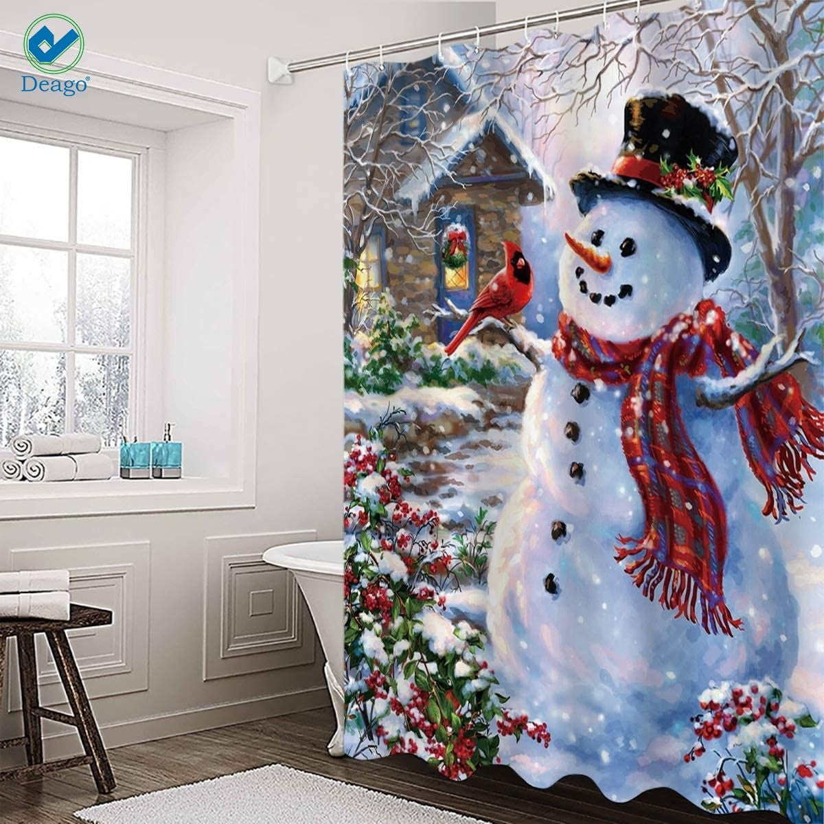 Deago Merry Christmas Shower Curtain Xmas Snowman Waterproof Funny Bathroom Curtains Party Decor With 12 Hooks Set (71’x71′)