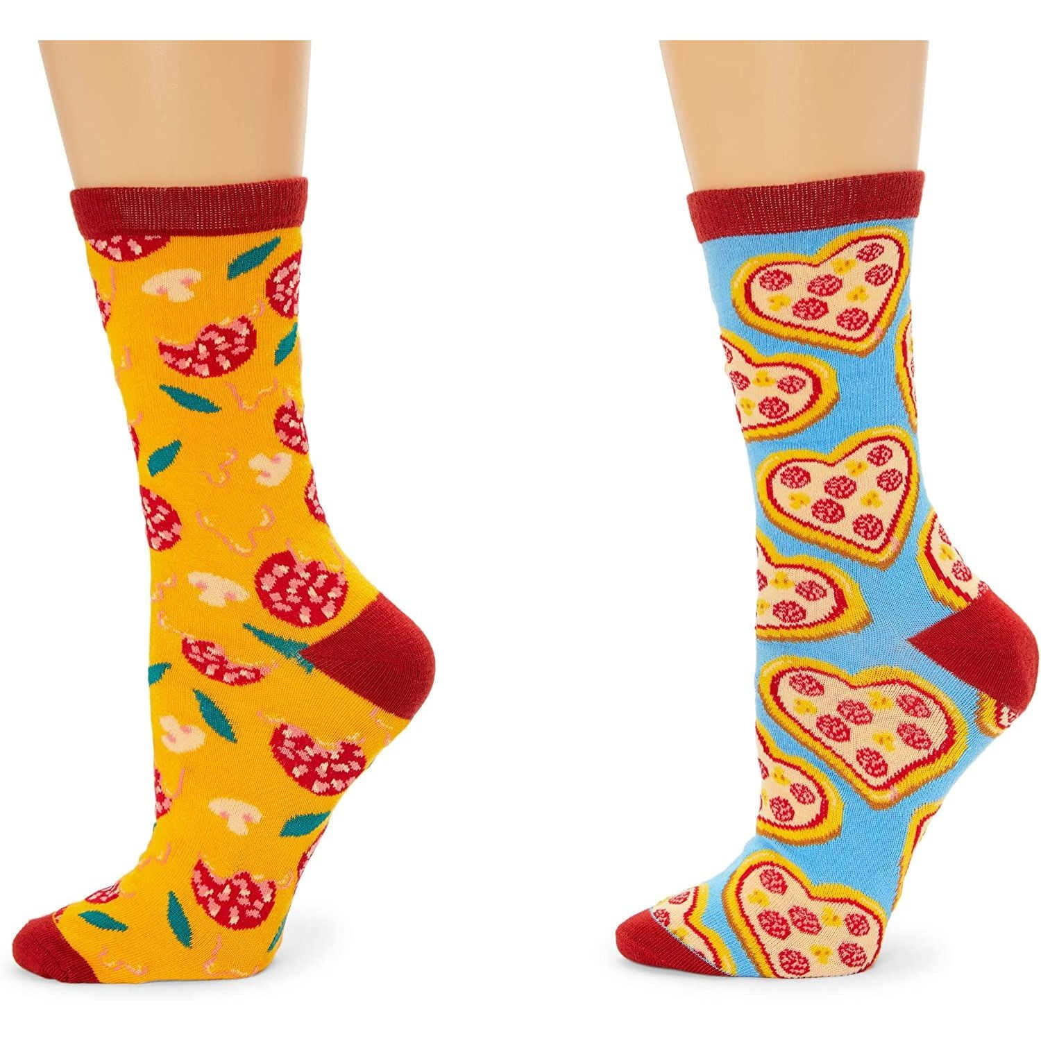 Pizza Crew Socks for Women, One Size (Yellow, Blue, 2 Pairs)