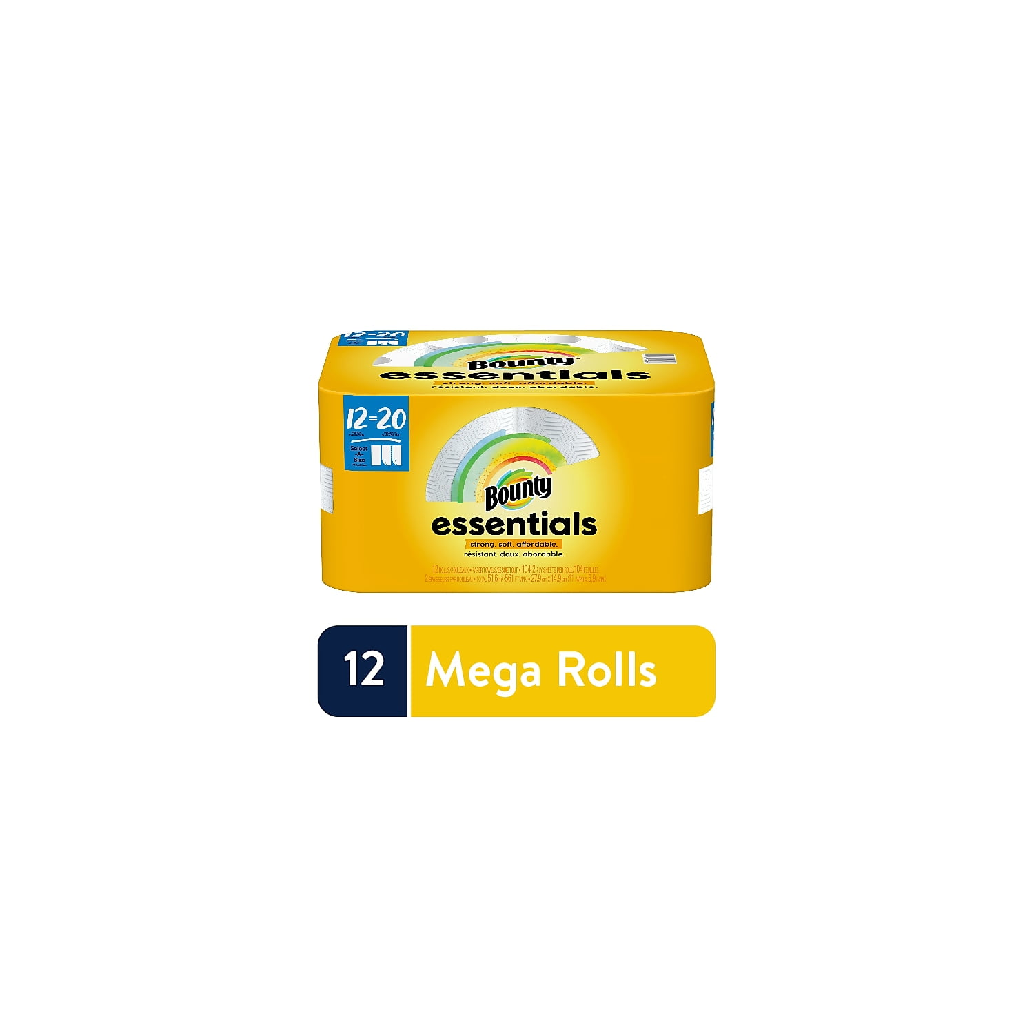 Bounty Essentials Paper Towels, 12 Mega Rolls, Select-A-Size