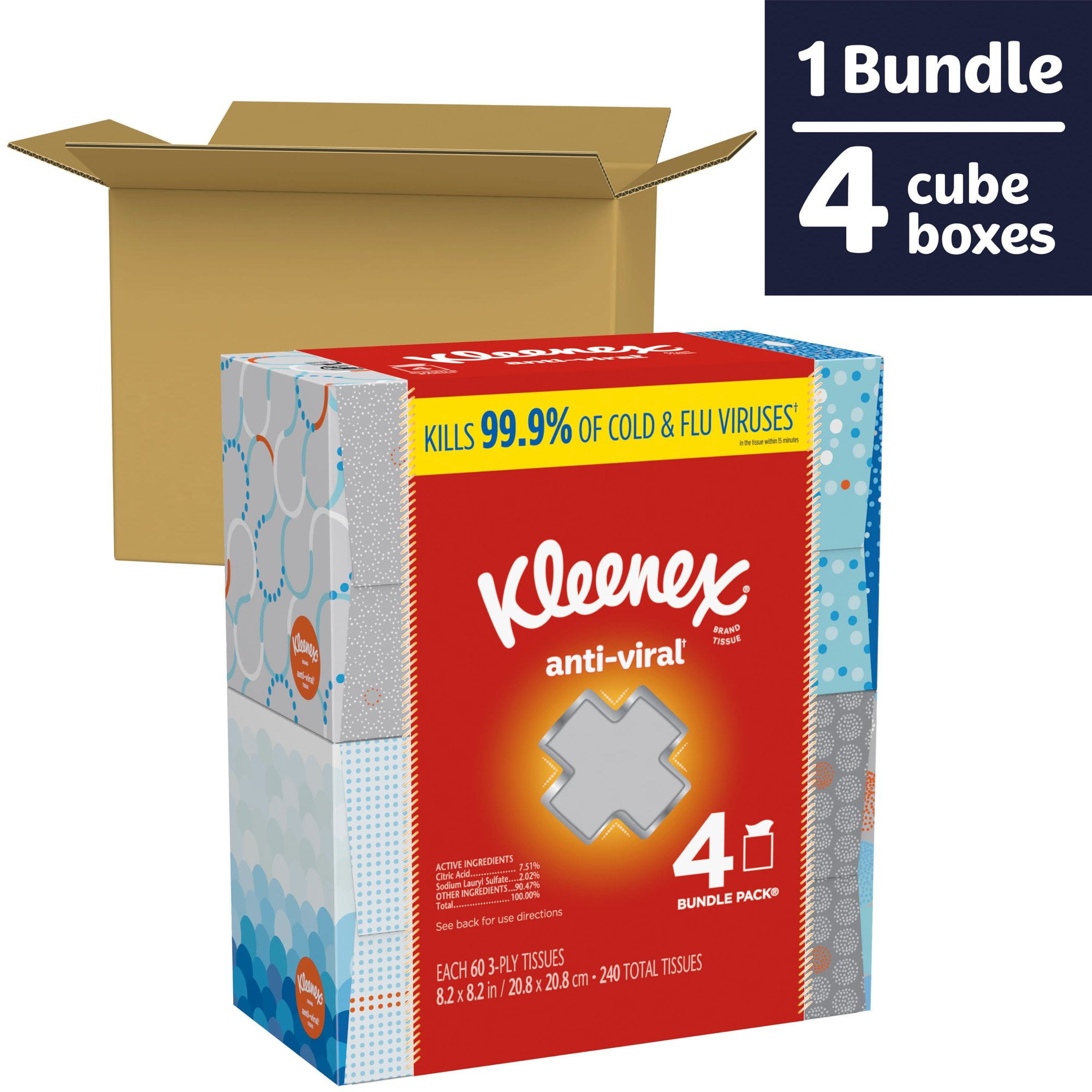 Kleenex Anti-Viral Facial Tissues, 4 Cube Boxes (240 Total Tissues)