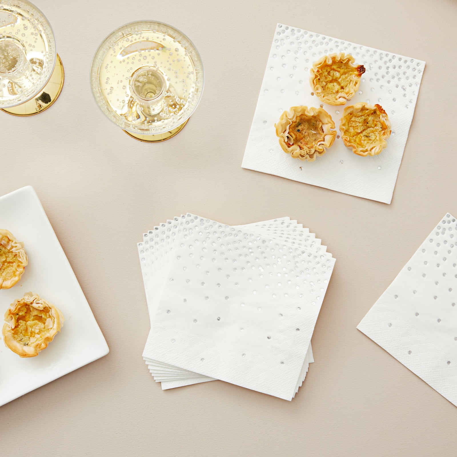 100 Pack Silver Polka Dot Cocktail Napkins, Confetti Foil Wedding Party Supplies, 5×5 In
