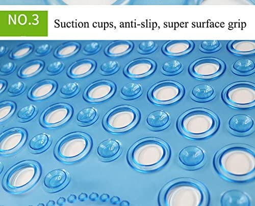 27×14 Non-Slip Bathtub Mats PVC Tub Mat Mildew Resistant Anti-Bacterial Shower Mat for Bathroom Feet Massage, Machine Washable Bath Mat with Suctions (Blue)