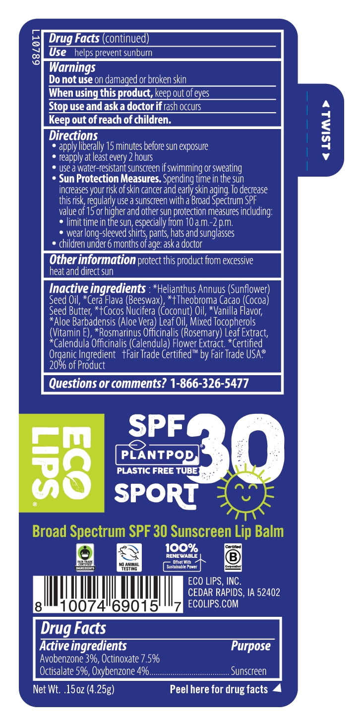 Eco Lips Sport SPF30 Broad Spectrum Sunscreen Plant Pod Lip Balm, 1 Each