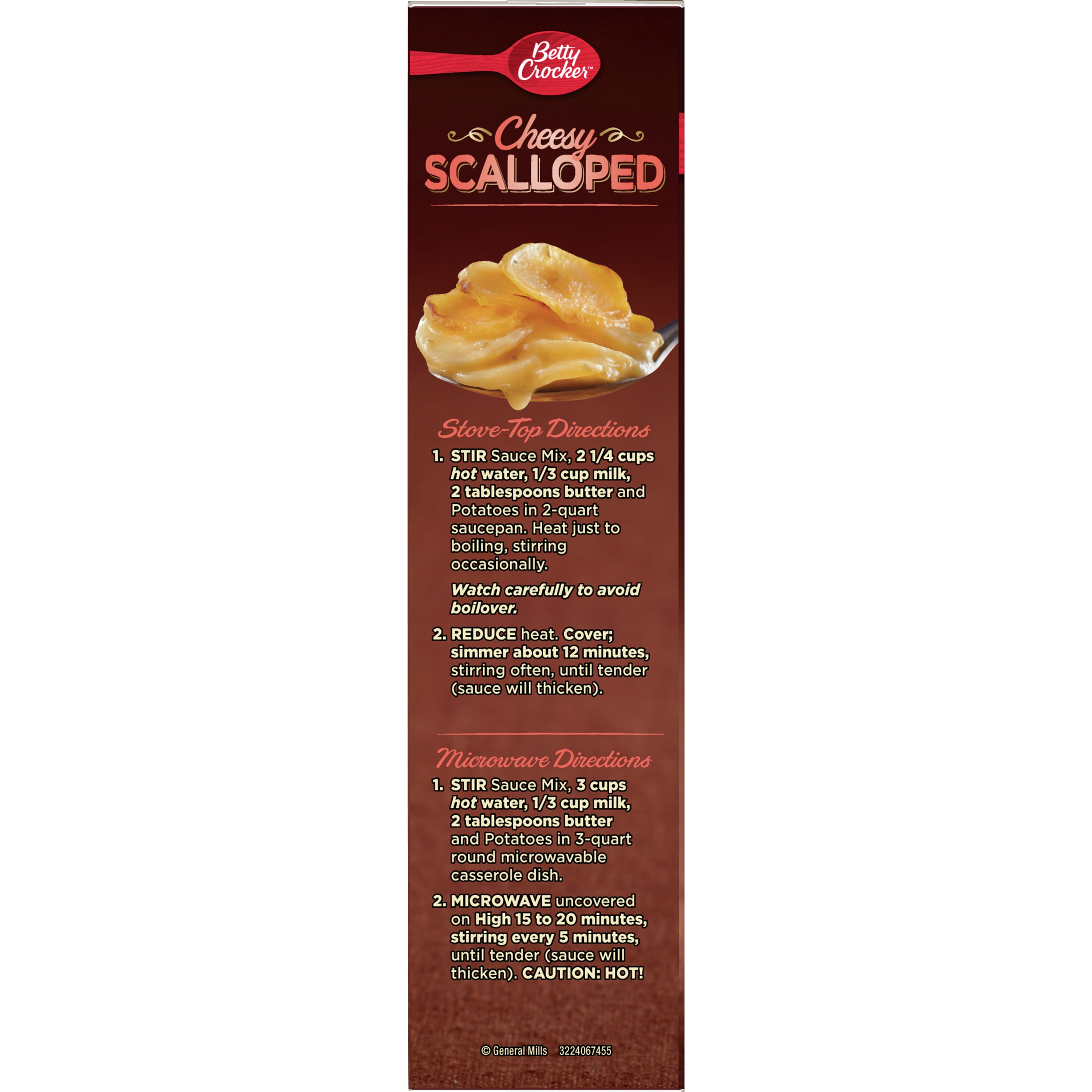 - CHEESY SCALLOPED POTATOES: Betty Crocker’s thinly sliced potatoes in a rich, creamy cheese sauce