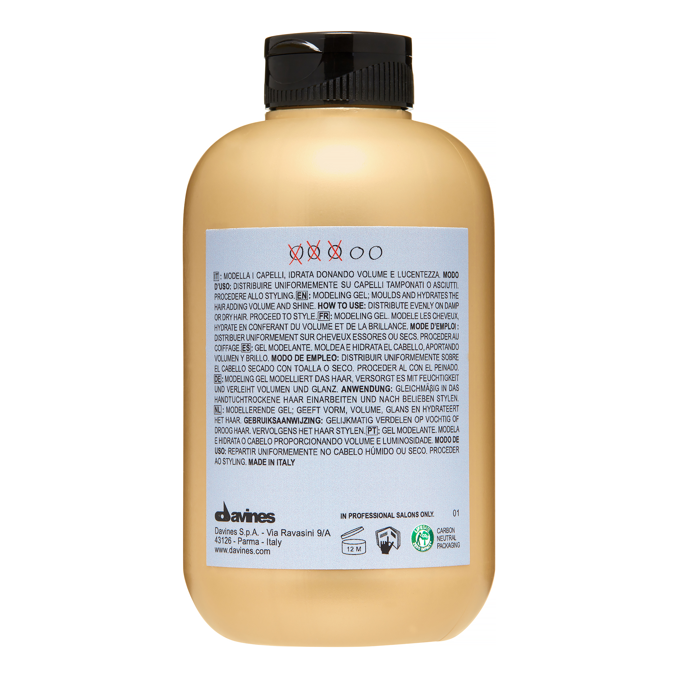 A medium hold hair modeling gel is a quick drying formula that leaves no residues. It provides definition and structure to hair. Adds body and elasticity to curls, gives memory effect and anti frizz action.Davines Hair Care More Inside Medium Hold Modelling Gel 8.45oz