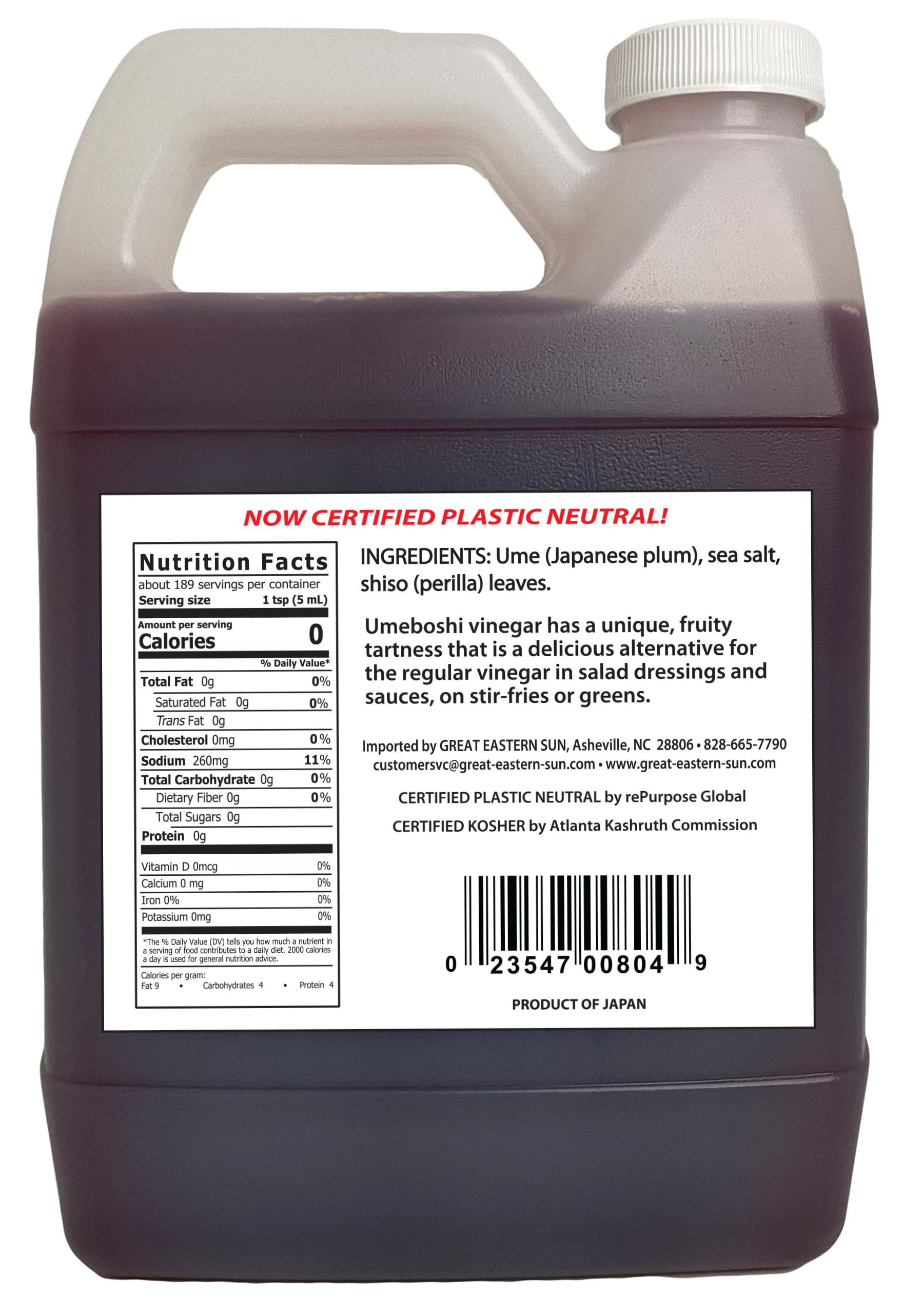 Emperor’s Kitchen Traditional Umeboshi Vinegar is the tart, salty by-product of the pickling of umeboshi plums.The ruby red color comes from red shiso, aka beefsteak leaf, an ingredient used in the pickling process of the plums. Sprinkle it on blanched or steamed vegetables; add to salad dressings, marinades, hot sauce, salsa, and dips.