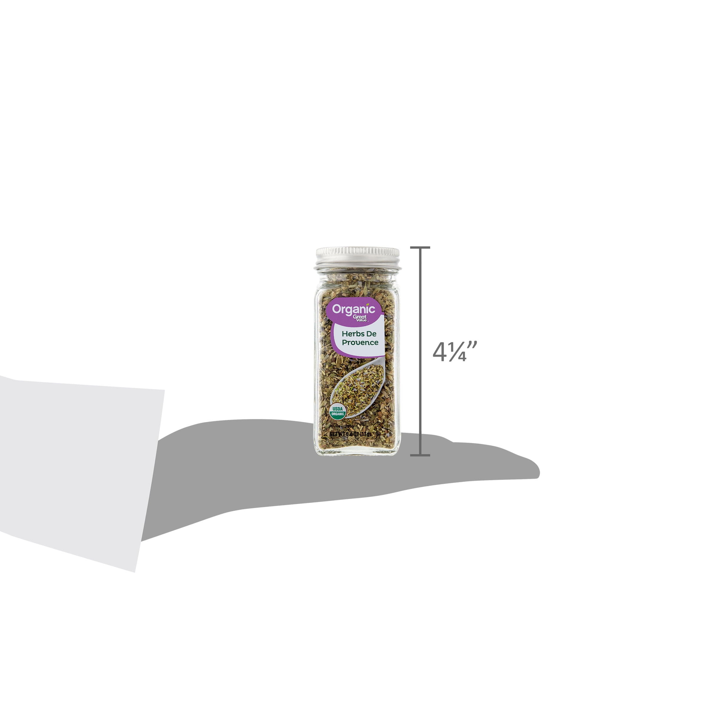 Bring a sophisticated flair to your favorite meals with Great Value Organic Herbs de Provence. This organic spice blend offers an aromatic mix of basil, fennel, marjoram, parsley, rosemary, lavender, tarragon, and thyme. It adds delicious flavor to vegetables, potatoes, and soups, and takes pork, chicken, or fish recipes to a new level. This USDA certified organic blend contains no artificial flavors or preservatives to deliver great food you can trust. Great Value Organic Herbs de Provence is a convenient and tasty way to infuse French flavors into your home-cooked meals.