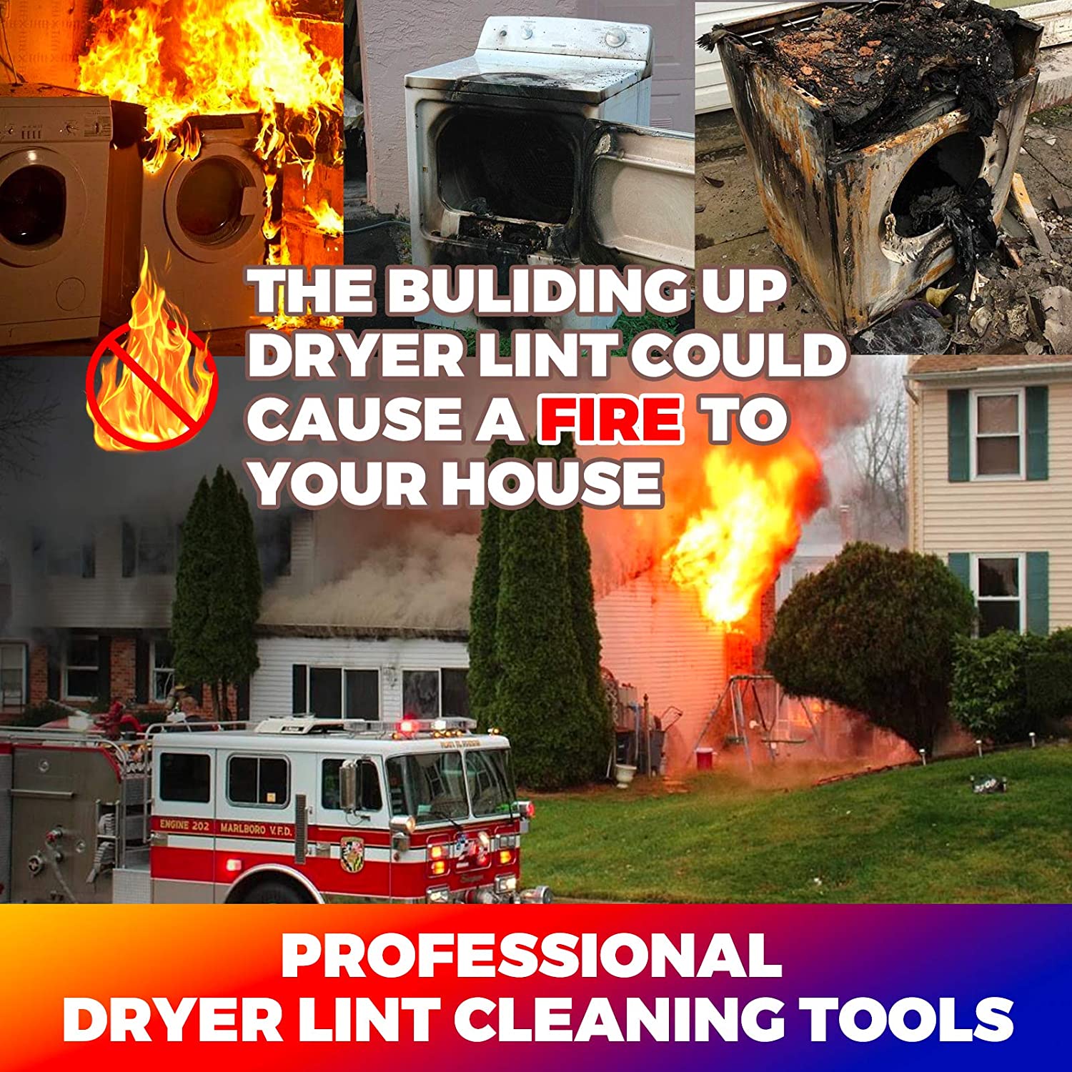 Dryer vent cleaner kits can easily help clean lint build-up from your dryer vents and power washer dryer , making your machines more efficient and cleaner. The flexible blue vacuum hose with a length of 31.5" is perfect for cleaning behind appliances beyond your reach. The dryer vacuum cleaners hose adapter fits most vacuums without worrying about connectors; the lint removers set is easily assemble and use. The 30" dryer lint brush, designed for cleaning lint left in the dryer, can also be used to clean the coils behind the refrigerator. Regular cleaning of dryer vents can help prevent deadly dryer vent fires.