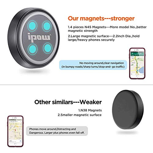 IPOW magnetic long arm Universal windshield dashboard car phone mount Holder cradle 360 degree swivelBonus 4 Metal Plates, Powerful N45 Magnets Hold Securely Larger/Heavier Plus Phones with Protective Cases—4pcs "Nd N45 magnets"+ 2.2" diameter large round magnetic clip surface.Phones won’t vibrate in a bumpy roads/sharp turns/stop-and-go traffic.In addition,it is more convienient and hassle-free to slap your phone on than fidget it into a clamp. | Strong Suction Cup—Strong lock mechanisms inside to keep suction cup from snapping and keep the whole holder from wiggling at the base;Heat-resistant gel adhensives,no need to worry about it will melt. | Easier to Position & Shockproof Arm—Arm Dimension:7.6" Long,0.46" Thick.It has the right amount of resistance and takes less strength to bend it to your desired angle. | Bonus 4 Metal Plates and Protective Films—You will receive 2 round+2 rectangle or 4 rectangle metal plates at random. Please use the rectangle one if your phone is big or heavy. To avoid any scratches or residues on your phone back, please stick the protective films to the front of magnet plate or the back of the phone/phone case. | We offer prompt efficient after sale service to ensure a happy purchasing. For any issue among the using of our product, you are warmly welcomed to contact us by e-mail. Our professional customer service is always there for your until you are satisfied with the solution.