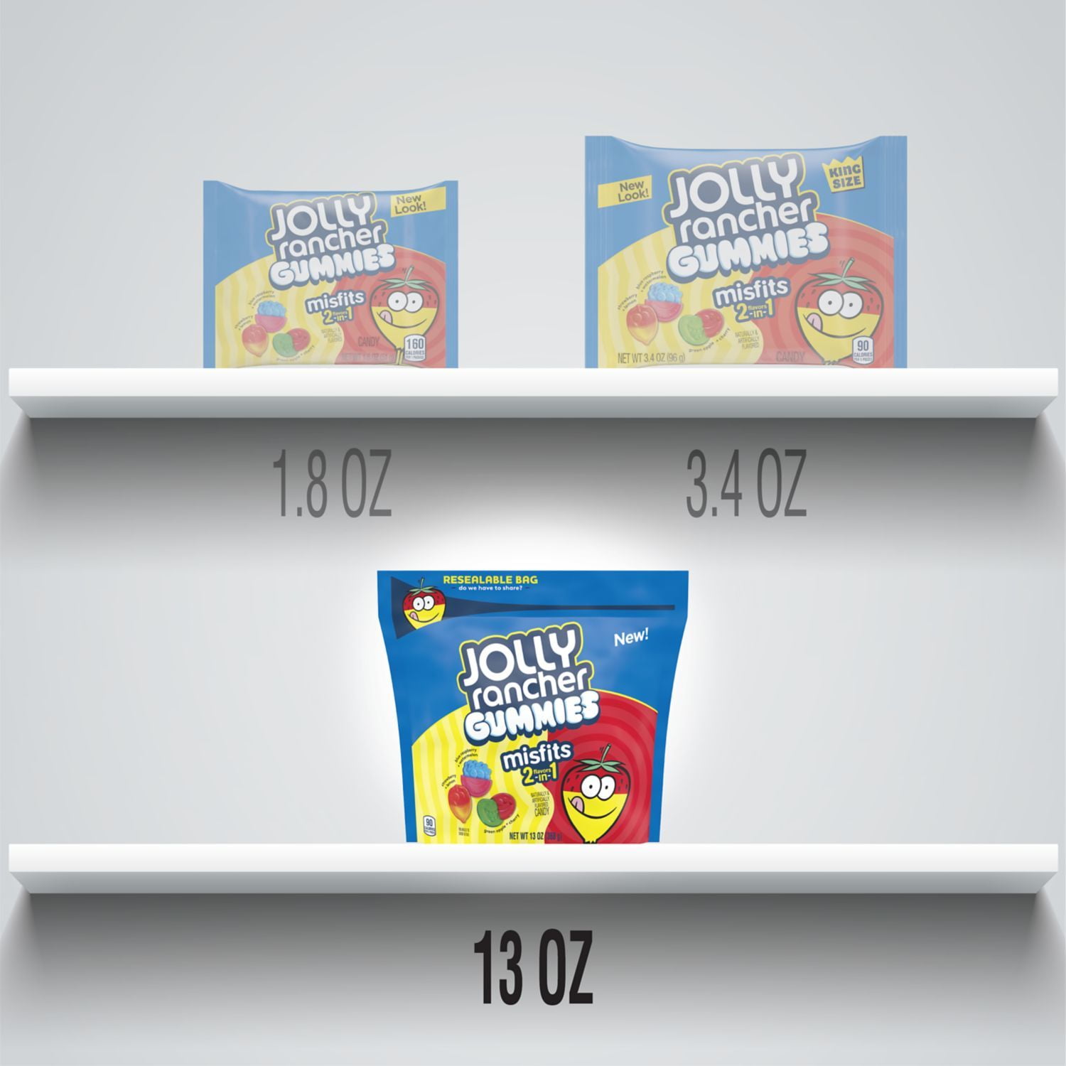 - Contains one (1) 13-ounce resealable bag of JOLLY RANCHER MISFITS 2-in-1 Assorted Fruit Flavored Gummies Candy