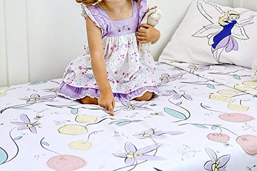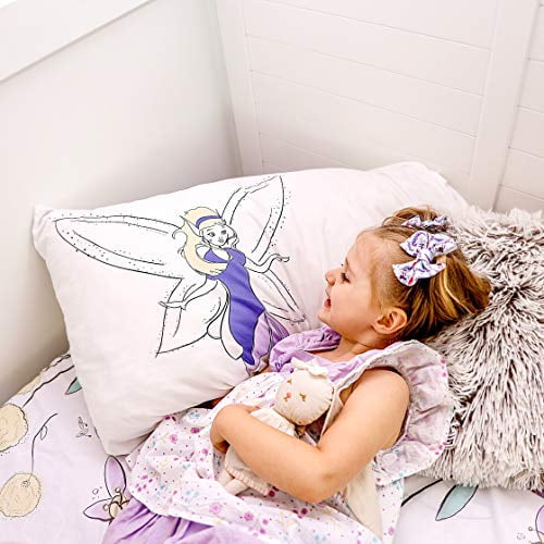 - COMPLETE SHEET SET FOR TWIN BED – This floral and fairy sheet set includes 1 fitted sheet, 1 flat sheet, and 1 pillow case. The pillow features a whimsical fairy, the flat sheet shows her fairy friends enjoying a floral garden, while the lavender fitted sheet has dreamy floral pattern.