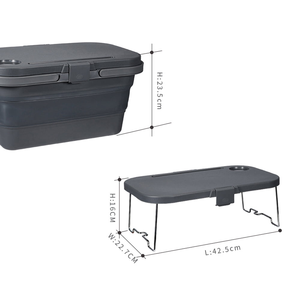 - FOLDABLE and SPACE SAVING: The picnic basket easily expands and folds, when you fold it up, it can save 3.4 times space and store it easily that unique portable pop-up design is allowed place it in your home, garage, or packed in the car with your camping gear. Dimensions: 18.9 x 13.9 x 4.1 inches, collapsed: 1.7” h. each 16l/4.2gal.