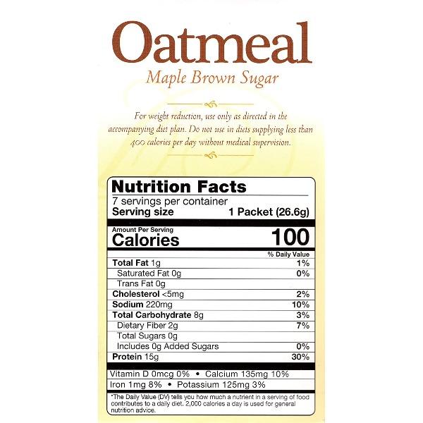 Our Maple Brown Sugar Protein Oatmeal is a perfect choice for those who crave a bowl of healthy oatmeal that’s delicious, filling, and an ideal weight loss diet meal. Our Maple Brown Sugar Protein oatmeal not only keeps you feeling satisfied longer and your mid morning cravings at bay, it is also low in fat, has only 6 net carbs, and 15 grams of protein! Start your day with our oatmeal and you may forget you were dieting in the first place! With just 100 calories per serving, you are on the right track to looking and feeling your best. Buy a box for yourself today.