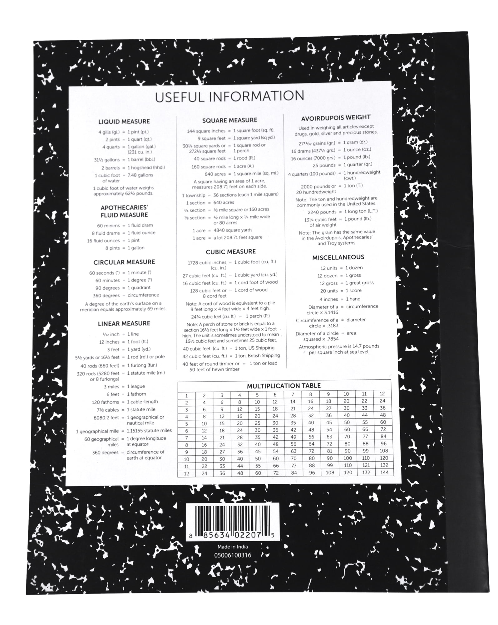 Keep all of your notes handy when you use the School Smart Marble Composition Book. It features a durable flexible cover that will last through the school year. In addition, it has a classic black and white marble design and a front cover space for your name, school and grade for easy identification. Its paper has narrow ruling to allow you to fit more on a page. In addition, this black and white composition book is also great for journal writing.School Smart Marbleback Composition Book with Flexible Cover, 9.75" x 7.5", 60 Sheets: