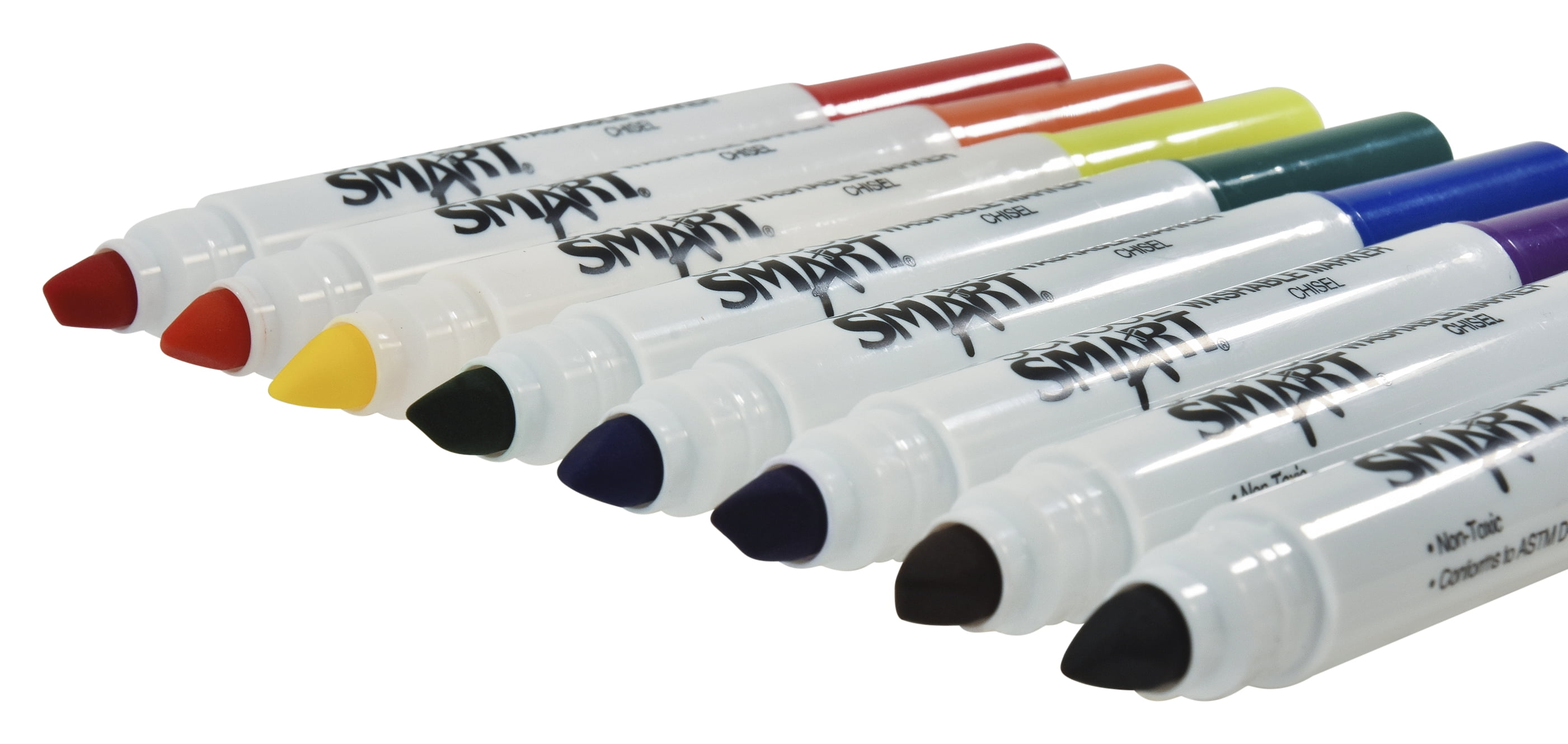 School Smart Chisel Tip Washable Marker Classroom Pack includes 8 non-toxic markers with ink that washes off easily from skin and many fabrics. Pack of 8 Washable Markets Include One of Each Color:RedOrangeYellowGreenBluePurpleBlackBrownSchool Smart Washable Markers, Chisel Tips, Assorted Colors, Pack of 8